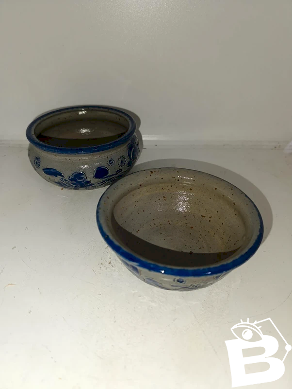 lot de deux pots alscaciens à decor floral signés en bon etat Bleu