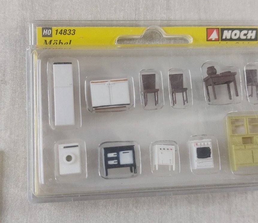 Lot de figurines + meubles, pour maquette train HO, Preiser 10338 + Noch 14833