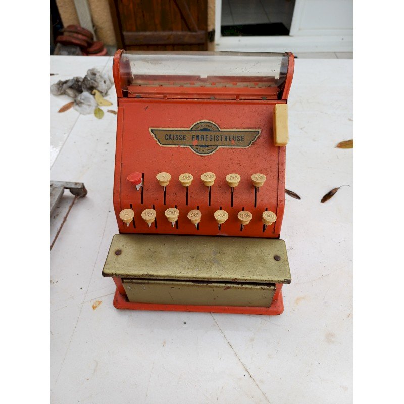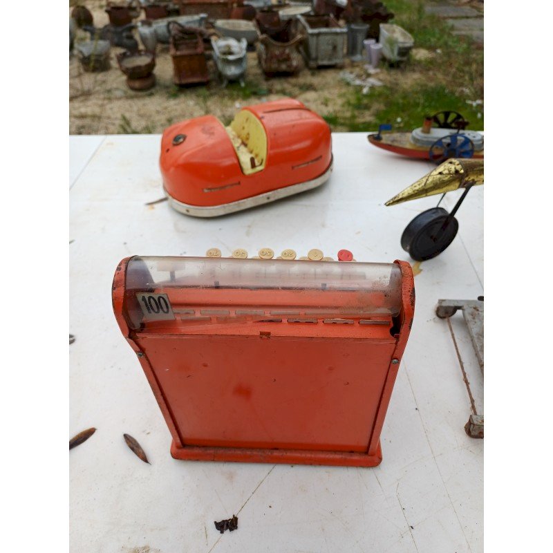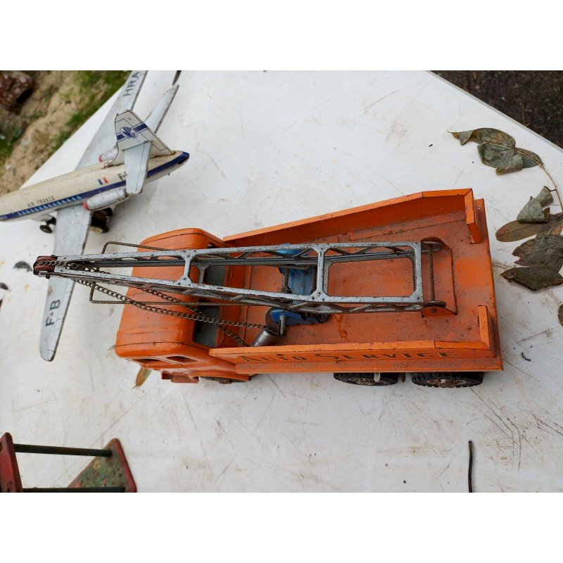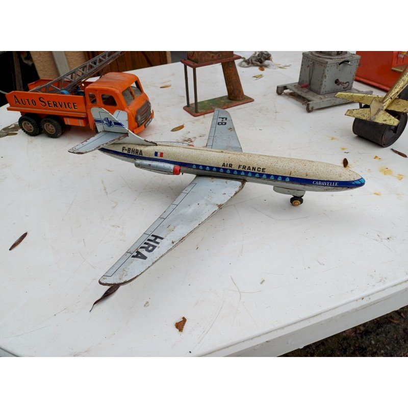Lot de Jouets  des Années 50 en Tole ,  Caravelle Air France , Tole  , Camion Grue en Tole Simca de Joustra  , Horloge Jouet ancien en Tole des Années 50 , Auto Tampon Bimbo Lumineux RCP Année 50 , Caisse Enregistreuse des Années 50 , Bateau à Roue D.R P.A Germany ,  Grue " Mécanisme à Clef ,  Bateau à Roue D.R P.A Germany , Tole , a Clef Remontoir , Marque : R.R.P.A Germany  et Concorde en Tole