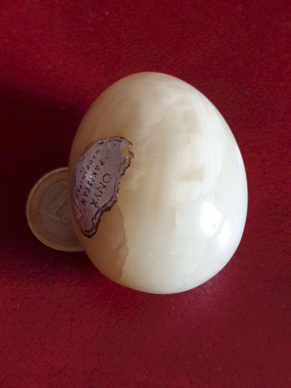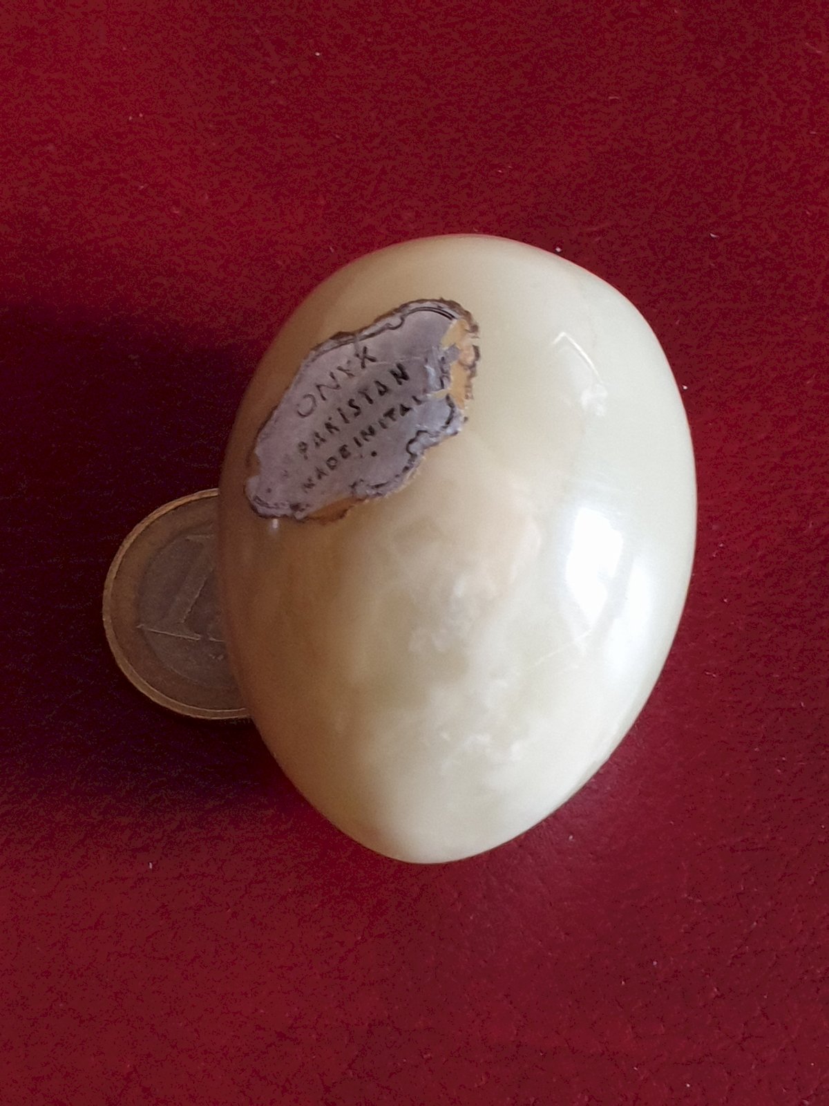 Un oeuf en onyx vert du Pakistan longueur 5,6 cm poids 139 grammes