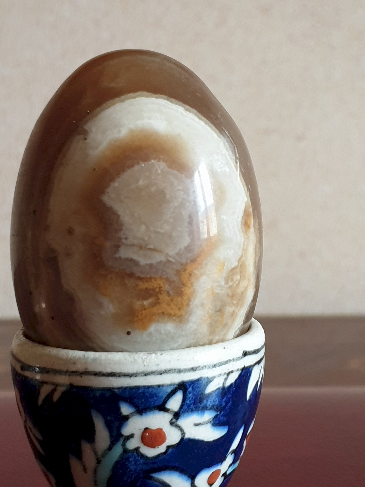 Un oeuf en onyx marron longueur 7,1 cm poids 233 grammes