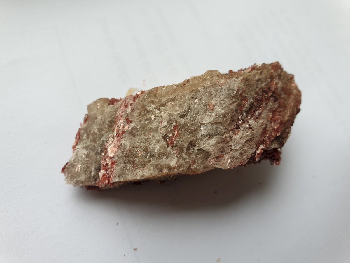 Un quartz avec veines de mica pourpre poids 26,8 grammes longueur 5,1 cm