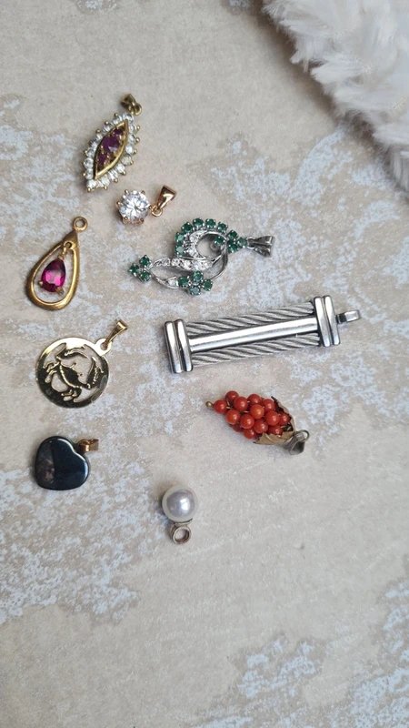 Lot de pendentifs anciens et vintage corail, saphir, pierre