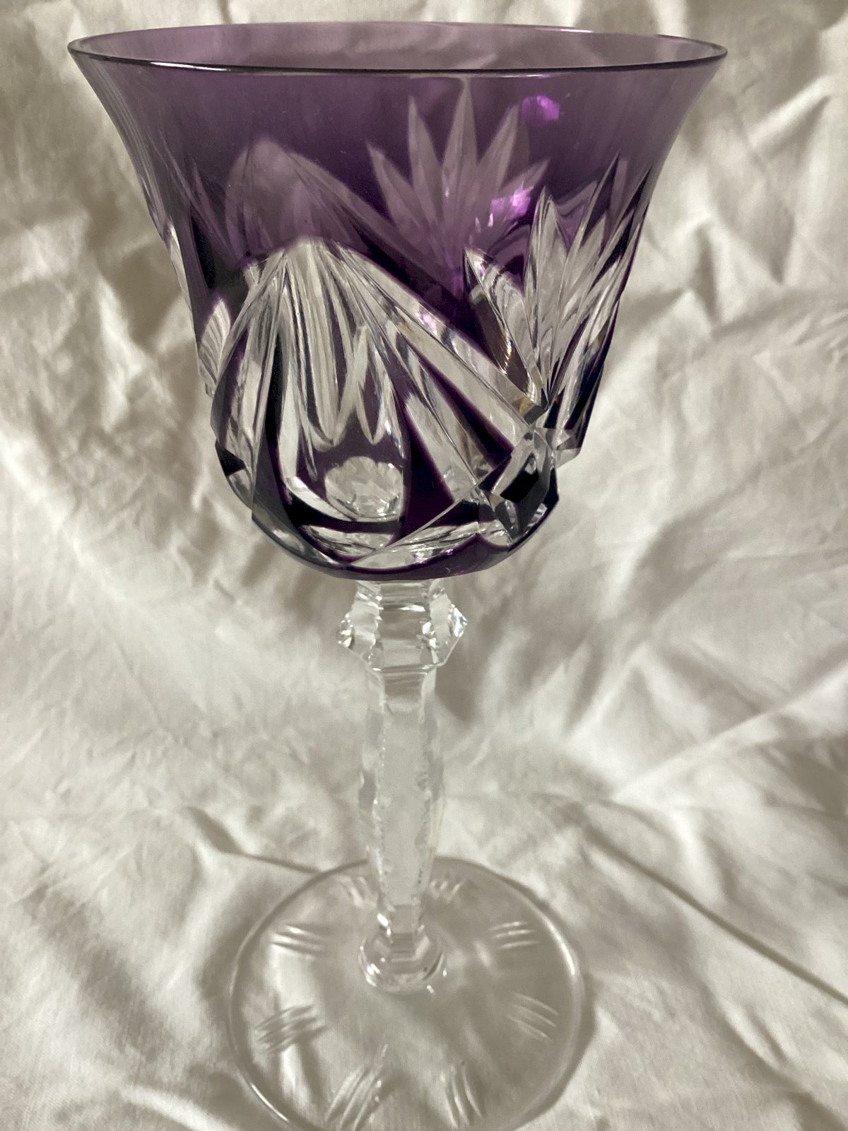 À vendre, une magnifique suite de 6 verres à vin du Rhin (Roemers) en cristal doublé et taillé à la main. Ce set "Harlequin" propose six couleurs éclatantes (bleu cobalt, rouge rubis, vert émeraude, améthyste, ambre et rose fuchsia), idéales pour une table de réception élégante et colorée.
