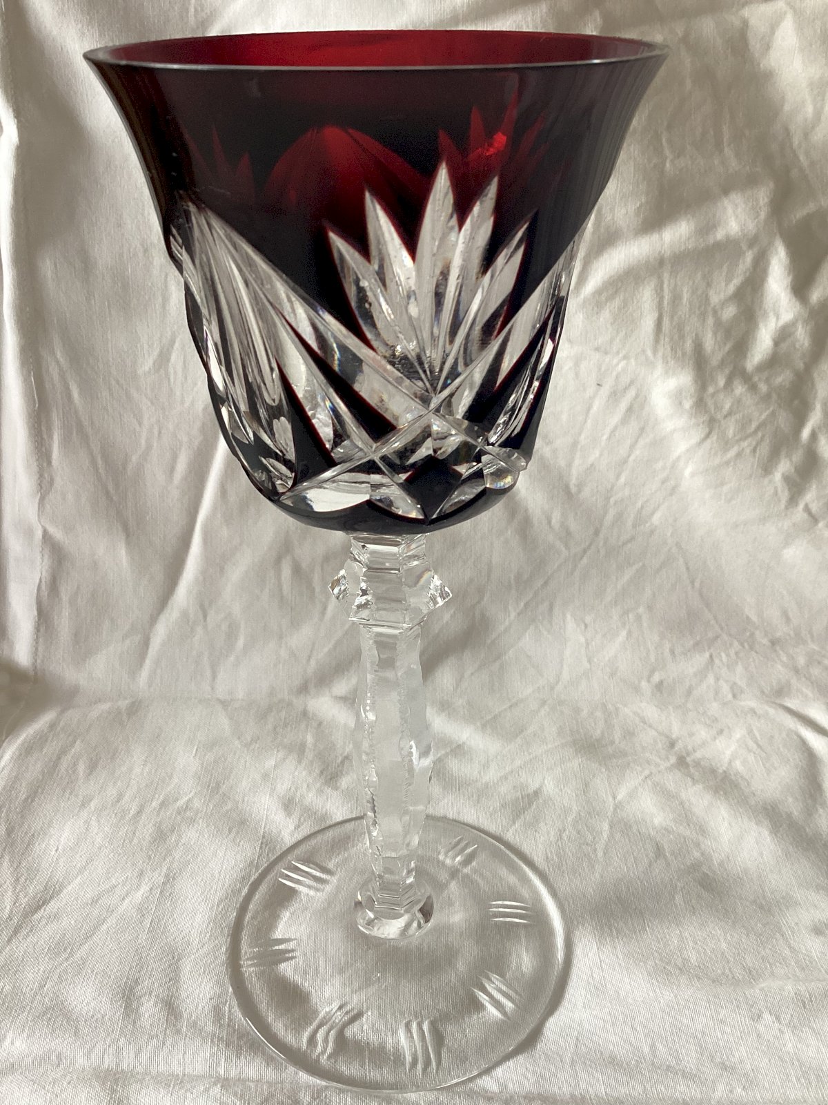 Lot de 6 verres à pied / vin / eau, en cristal, de Vallerysthal