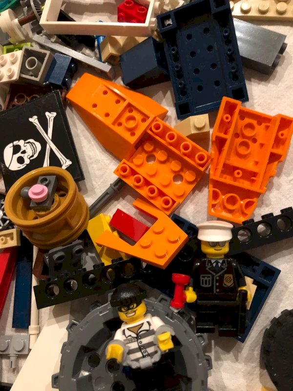 Lot/vrac de pièces de Lego plus bateau de police