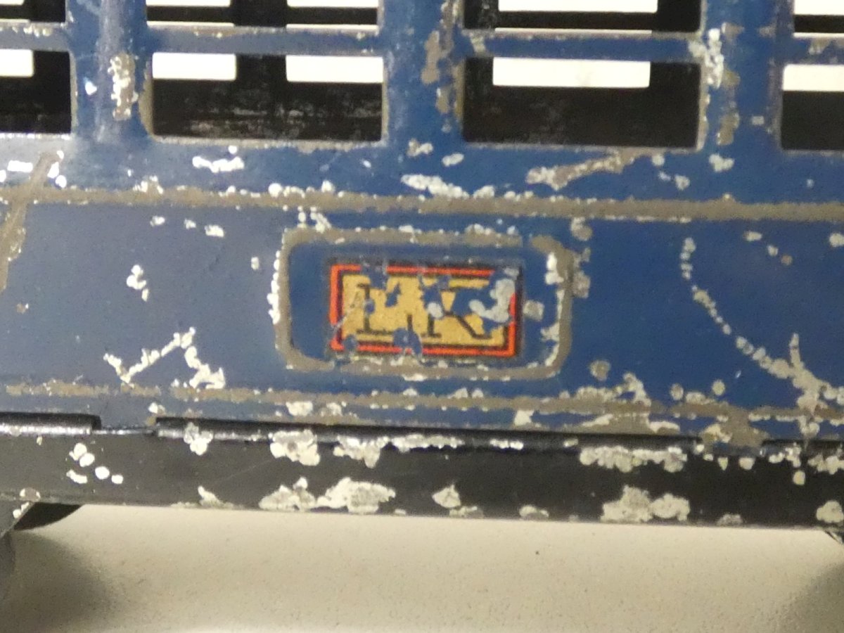 Ancien wagon voyageurs LR (Le Rapide) en tôle lithographiée, fabrication française des années 1930–40. Jouet de collection typique des premiers trains mécaniques LR. Wagon de couleur bleu marine avec toit crème , logo LR visible sur les flancs, tampons et attelages métalliques d’origine. Roues métalliques sur essieux mobiles. Caractéristiques : Marque : LR (Le Rapide) Fabrication : France Période : années 1930–40 Matériau : tôle lithographiée Longueur : env. 17 cm État : Solide et complet, mais avec usure marquée de la peinture (éclats, manques visibles). Aucune casse structurelle, bon roulement. Pièce non restaurée, patine d’origine. État:OccasionObjet ayant été utilisé. les éventuelles imperfections. Marque:LR Époque:Époque 2 (1926 - 1945)