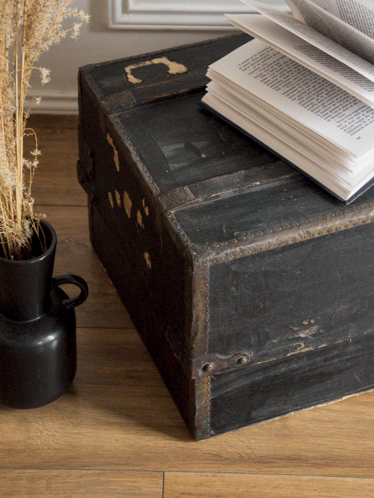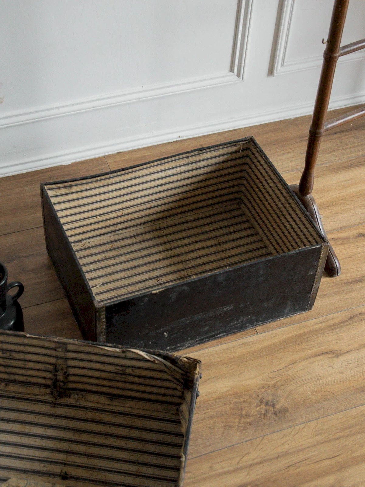 Découvrez ce magnifique coffre noir, orné d'écritures qui lui confèrent un charme unique et authentique. Ses quelques traces du temps ajoutent à son caractère vintage, témoignant de son histoire. À l’intérieur, un tissu rayé élégant apporte une touche de sophistication, idéal pour ranger vos trésors ou organiser votre intérieur avec style. Ce coffre allie à la fois esthétique et fonctionnalité, faisant de lui un incontournable pour les amateurs de pièces atypiques. Longueur : 45 cm Largeur : 31,5 cm Hauteur : 27 cm État:Occasion: Objet ayant été utilisé. Objet présentant quelques marques d'usure superficielle, ...Occasion: Objet ayant été utilisé. Objet présentant quelques marques d'usure superficielle, entièrement opérationnel et fonctionnant correctement. Il peut s'agir d'un modèle de démonstration ou d'un objet retourné en magasin après une courte période d'utilisation. les éventuelles imperfections. Marque:Debongout Type:Produit chiné Matériau:Tissu Style:Campagne