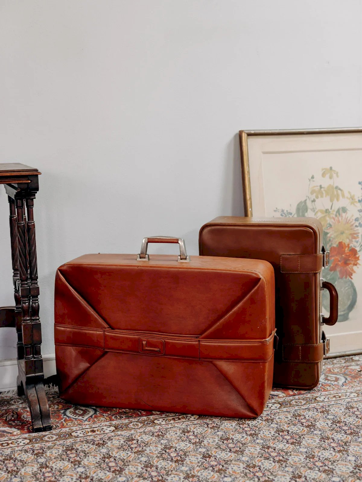 Invitez cette malle-valise vintage habillée de skai terracotta au cœur de votre intérieur, son profil élancé et son format vertical apportant une silhouette graphique. La poignée métal compacte et la fermeture zippée latérale assurent une manipulation pratique, tandis que ses proportions fines se glissent aisément dans une entrée, une chambre ou sur une étagère. La teinte terracotta et le skai patiné confèrent une chaleur subtile et une allure rétro, idéale pour introduire une pointe d'élégance fonctionnelle dans un intérieur contemporain. Dimensions verticales : Longueur : 62 cm Largeur : 17 cm Hauteur : 50 cm Petite histoire de la malle L'une des plus anciennes malles connue remonte à l'âge d'or des pharaons égyptiens. De nombreux coffres ont en effet été trouvés dans la tombe de Toutankhamon. Même les Grecs et les Romains les utilisaient dans tous les voyages importants. À l'époque, la malle était un coffre en bois et en bronze, parfois décoré d'ornements en ivoire et en métaux précieux. Le couvercle était plat afin de permettre la superposition des malles dans le moyen de transport utilisé. À la découverte de l'Amérique en 1492, des malles remplies de tous les nouveaux fruits et produits du Nouveau Monde ont traversé l'océan pour atteindre l'Ancien Monde. La révolution industrielle a balayé le XIXème siècle avec le début d'un nouveau concept de malles de voyage. Petit à petit, le coffre s'est installé dans les intérieurs, devenant le contenant parfait pour les souvenirs d'enfance ou la table basse bien pratique ! État:Occasion: Objet ayant été utilisé. Objet présentant quelques marques d'usure superficielle, ...Occasion: Objet ayant été utilisé. Objet présentant quelques marques d'usure superficielle, entièrement opérationnel et fonctionnant correctement. Il peut s'agir d'un modèle de démonstration ou d'un objet retourné en magasin après une courte période d'utilisation. les éventuelles imperfections. Marque:Debongout Type:Produit chiné Matériau:Skaï Style:Campagne