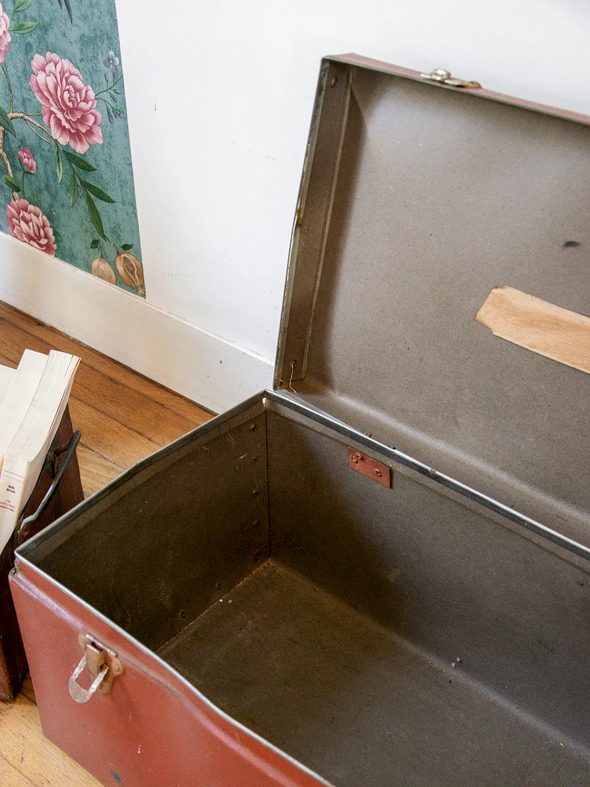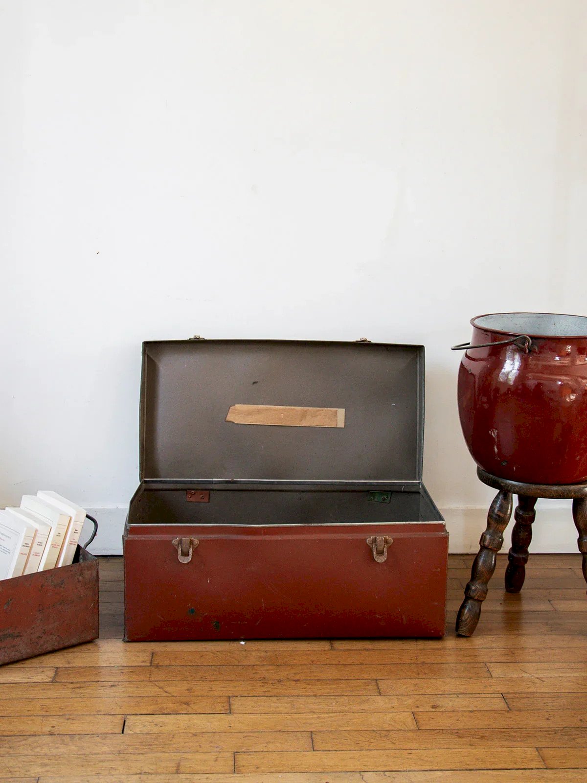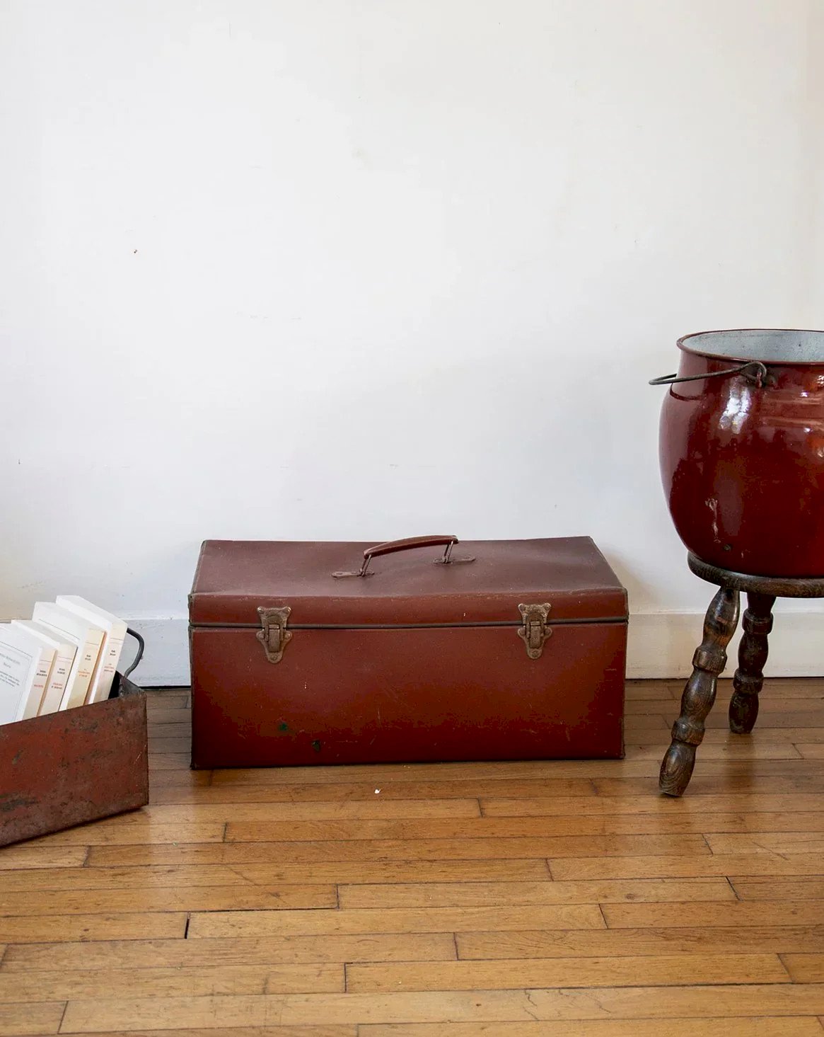 Découvrez cette malle bordeaux en cartonné avec un revêtement en simili cuir dur, un véritable objet décoratif qui allie élégance et praticité. Ses finitions soignées et sa couleur profonde apportent une touche de luxe vintage à votre intérieur. Equipée de poignées en métal, elle offre une grande fonctionnalité tout en conservant un look raffiné. Idéale pour organiser vos affaires ou pour ajouter du caractère à un salon ou une chambre, elle se distingue par son style unique. Exclusivité web, la rencontre se fera chez vous ! Longueur : 58 cm Hauteur : 24 cm Profondeur : 29,5 cm Petite histoire de la malle L'une des plus anciennes malles connue remonte à l'âge d'or des pharaons égyptiens. De nombreux coffres ont en effet été trouvés dans la tombe de Toutankhamon. Même les Grecs et les Romains les utilisaient dans tous les voyages importants. À l'époque, la malle était un coffre en bois et en bronze, parfois décoré d'ornements en ivoire et en métaux précieux. Le couvercle était plat afin de permettre la superposition des malles dans le moyen de transport utilisé. À la découverte de l'Amérique en 1492, des malles remplies de tous les nouveaux fruits et produits du Nouveau Monde ont traversé l'océan pour atteindre l'Ancien Monde. La révolution industrielle a balayé le XIXème siècle avec le début d'un nouveau concept de malles de voyage. Petit à petit, le coffre s'est installé dans les intérieurs, devenant le contenant parfait pour les souvenirs d'enfance ou la table basse bien pratique ! État:Occasion: Objet ayant été utilisé. Objet présentant quelques marques d'usure superficielle, ...Occasion: Objet ayant été utilisé. Objet présentant quelques marques d'usure superficielle, entièrement opérationnel et fonctionnant correctement. Il peut s'agir d'un modèle de démonstration ou d'un objet retourné en magasin après une courte période d'utilisation. les éventuelles imperfections. Marque:Debongout Type:Produit chiné Matériau:Carton, Simili cuir Style:Campagne