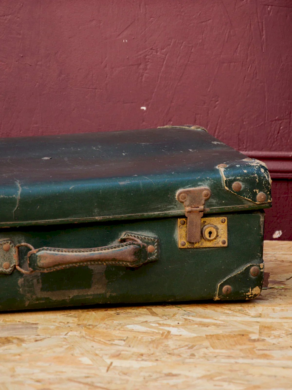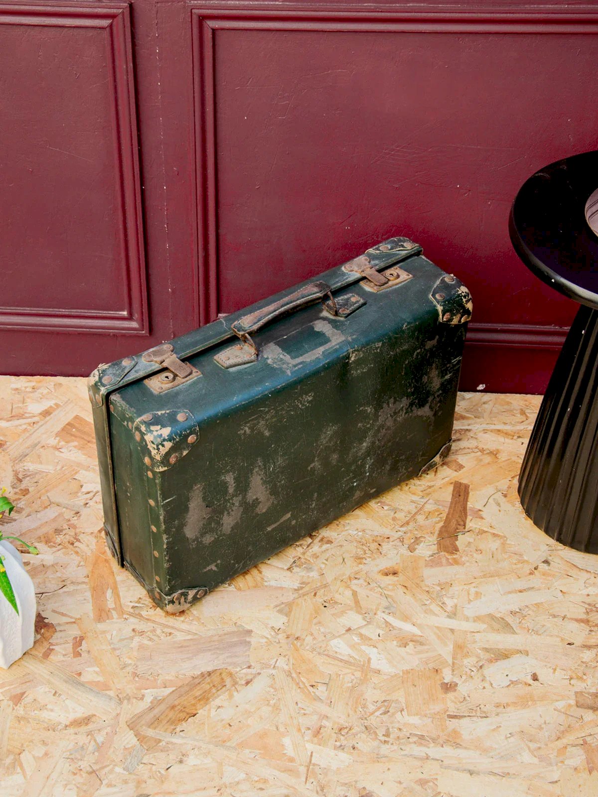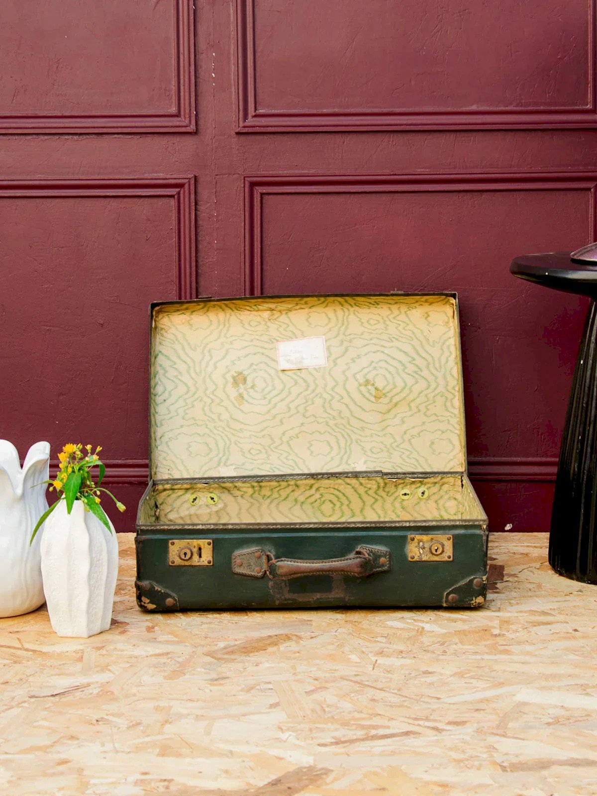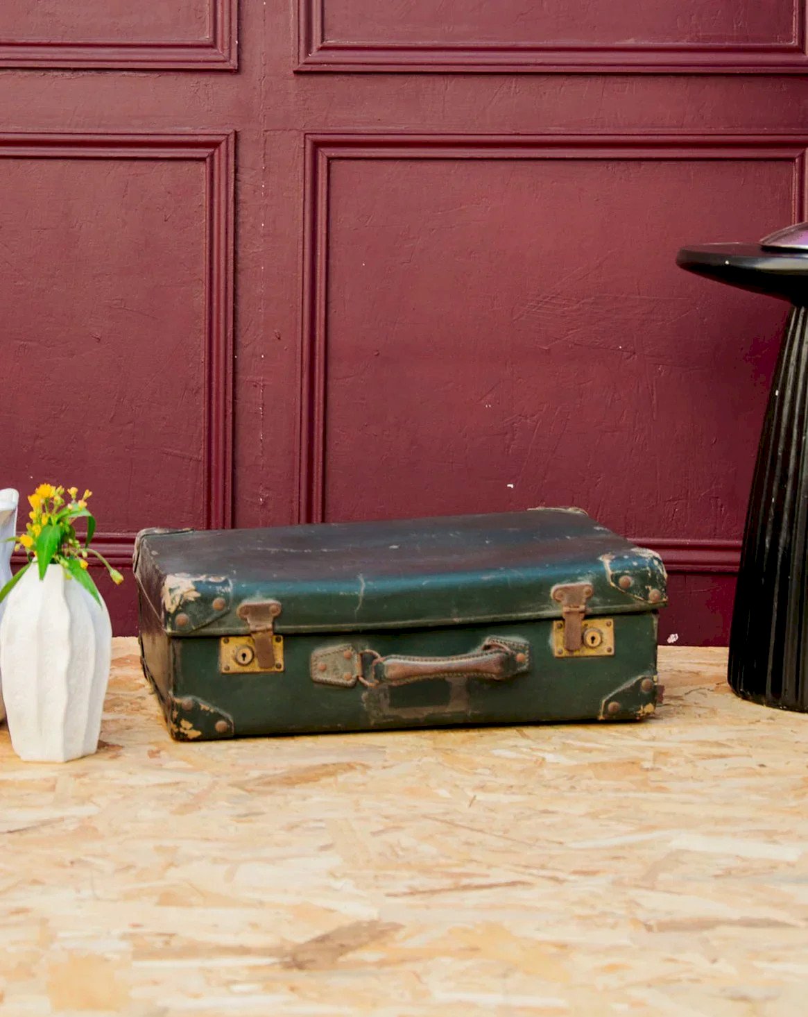 Découvrez notre charmante petite valise cartonnée verte, rehaussée de pièces de métal rouillées qui lui confèrent un caractère vintage irrésistible. Pratique autant que décorative, elle peut accueillir vos essentiels du quotidien ou se transformer en bel objet à exposer. Son allure rétro et sa teinte douce apportent une touche d’authenticité à n’importe quel intérieur. Une pièce pleine de charme pour les amateurs de décoration au goût du détail. Longueur : 50 cm Hauteur : 37 cm Profondeur : 14 cm Petite histoire de la malle L'une des plus anciennes malles connue remonte à l'âge d'or des pharaons égyptiens. De nombreux coffres ont en effet été trouvés dans la tombe de Toutankhamon. Même les Grecs et les Romains les utilisaient dans tous les voyages importants. À l'époque, la malle était un coffre en bois et en bronze, parfois décoré d'ornements en ivoire et en métaux précieux. Le couvercle était plat afin de permettre la superposition des malles dans le moyen de transport utilisé. À la découverte de l'Amérique en 1492, des malles remplies de tous les nouveaux fruits et produits du Nouveau Monde ont traversé l'océan pour atteindre l'Ancien Monde. La révolution industrielle a balayé le XIXème siècle avec le début d'un nouveau concept de malles de voyage. Petit à petit, le coffre s'est installé dans les intérieurs, devenant le contenant parfait pour les souvenirs d'enfance ou la table basse bien pratique ! État:Occasion: Objet ayant été utilisé. Objet présentant quelques marques d'usure superficielle, ...Occasion: Objet ayant été utilisé. Objet présentant quelques marques d'usure superficielle, entièrement opérationnel et fonctionnant correctement. Il peut s'agir d'un modèle de démonstration ou d'un objet retourné en magasin après une courte période d'utilisation. les éventuelles imperfections. Marque:Debongout Type:Produit chiné Matériau:Carton, Métal Style:Campagne