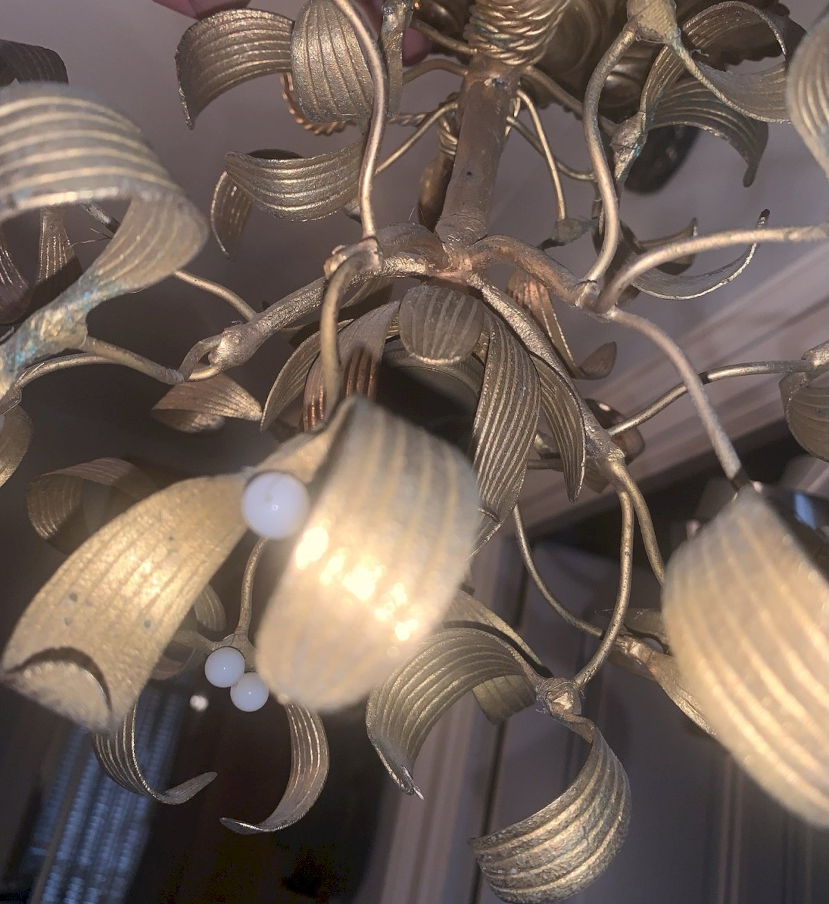 Lustre en bronze boule de gui art nouveau 1900's