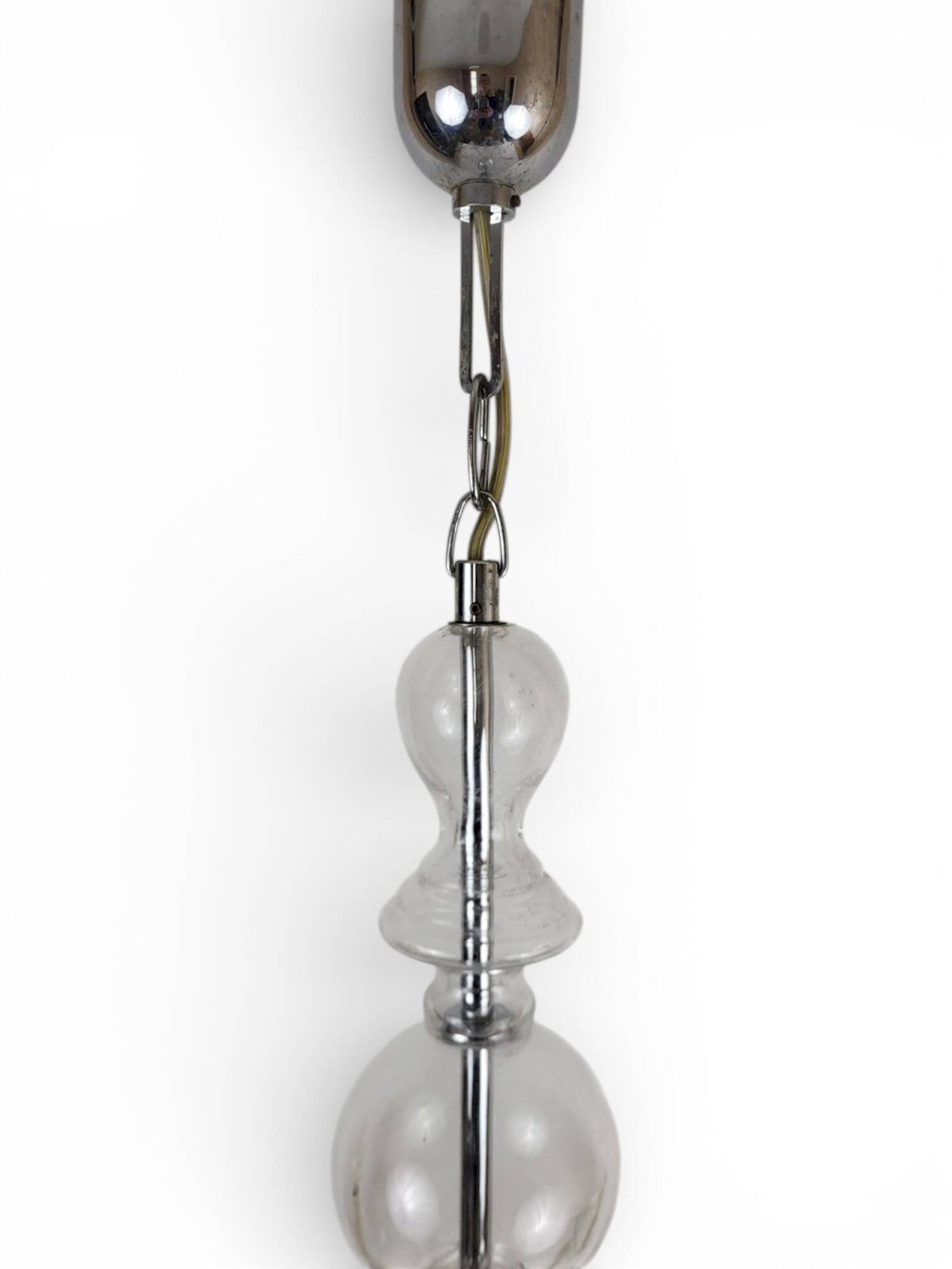 JOLI LUSTRE SUSPENSION mi XXe GROS GLOBE CRISTAL décor fougères dégagé acide