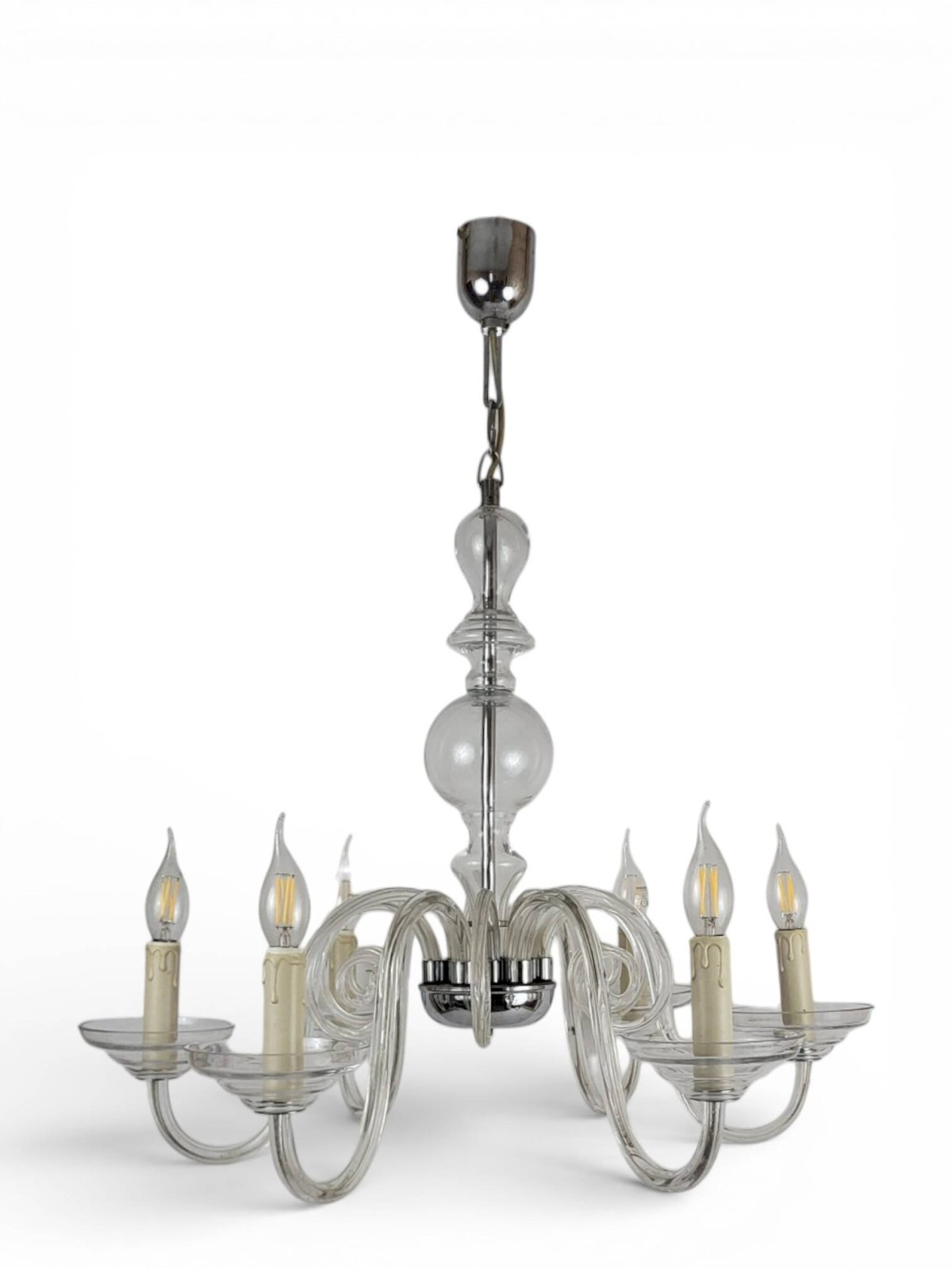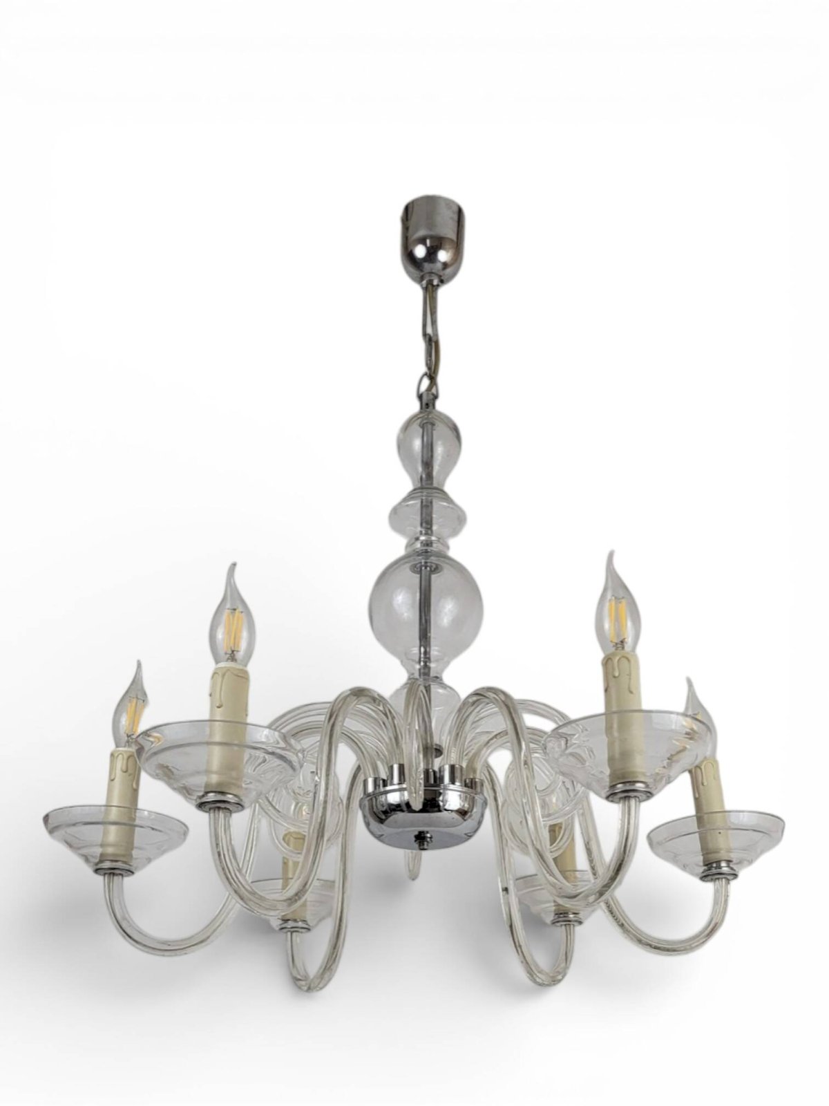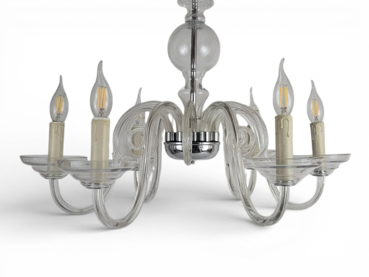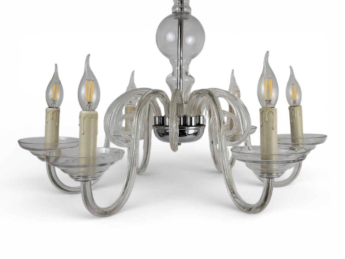 Lustre à 6 bras de lumière en cristal de Bohème / Marque Preciosa / Origine Tchèque.