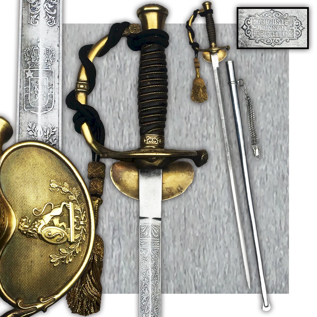 Très belle et rare épée à saisir absolument pour les passionnés de pièces luxueuses belges, pièce provenant de ma collection personnelle, je m'en sépare car manque de place