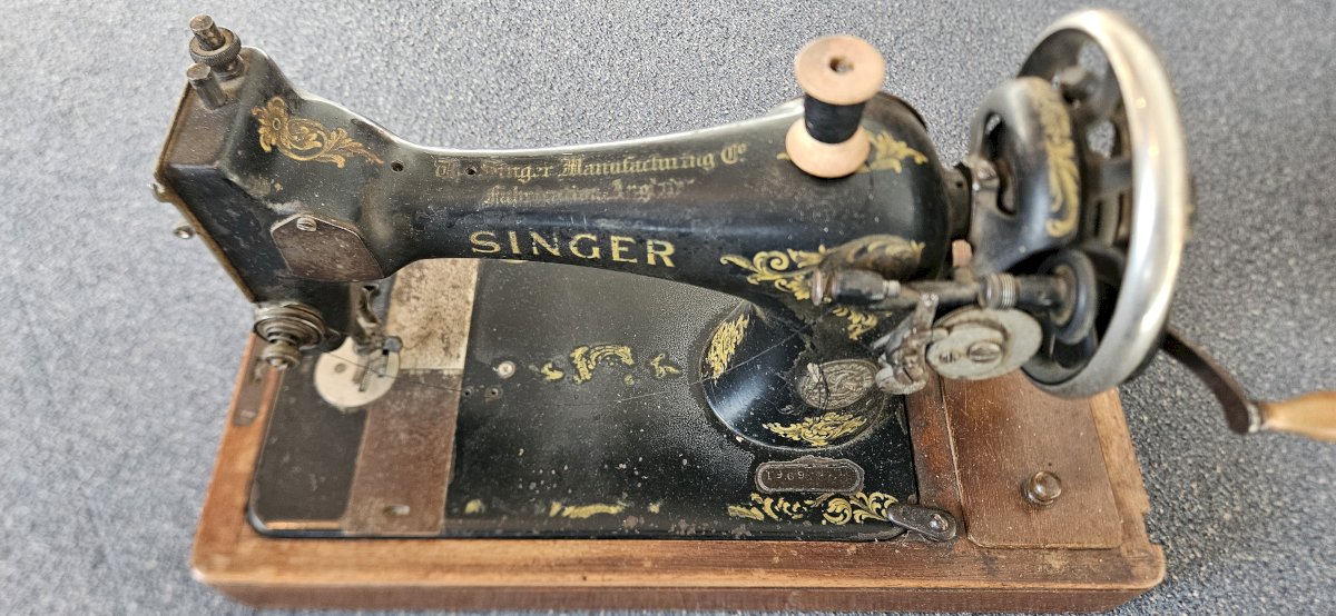 Vends ancienne machine à coudre de marque Singer avec coffre en bois d'origine