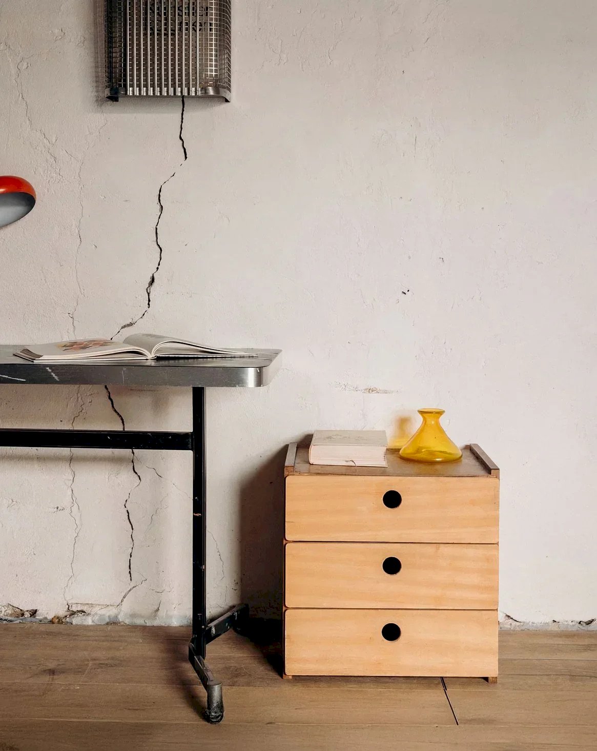 Découvrez ce chevet ou petite commode en bois aux nuances contrastées, mêlant subtilement deux teintes pour un effet visuel tout en douceur. Avec ses trois tiroirs spacieux, elle offre un rangement pratique sans encombrer l’espace. Son design simple et chaleureux s’adapte aussi bien à une chambre qu’à une entrée ou un salon. Un meuble fonctionnel et plein de charme pour votre intérieur. Longueur : 48 cm Largeur : 34,5 cm Hauteur : 48 cm Hauteur tiroir : 12 cm Petite histoire du chevet Le terme "chevet" désigne depuis le Moyen Âge un petit meuble placé à côté du lit. Initialement conçu comme support pour une lampe ou des objets personnels, le chevet évolue avec le temps pour inclure des tiroirs et des étagères. Essentiel dans la chambre à coucher, il allie aujourd'hui fonctionnalité et design, s’adaptant à tous les styles d'intérieur. État:Occasion: Objet ayant été utilisé. Objet présentant quelques marques d'usure superficielle, ...Occasion: Objet ayant été utilisé. Objet présentant quelques marques d'usure superficielle, entièrement opérationnel et fonctionnant correctement. Il peut s'agir d'un modèle de démonstration ou d'un objet retourné en magasin après une courte période d'utilisation. les éventuelles imperfections. Marque:Debongout Type:Produit chiné Matériau:Bois Personnalisé:Chevets Style:Contemporain