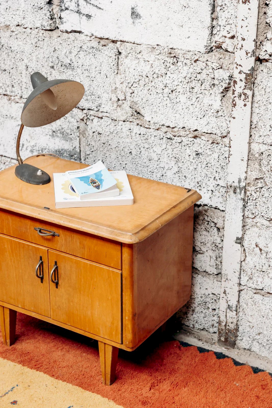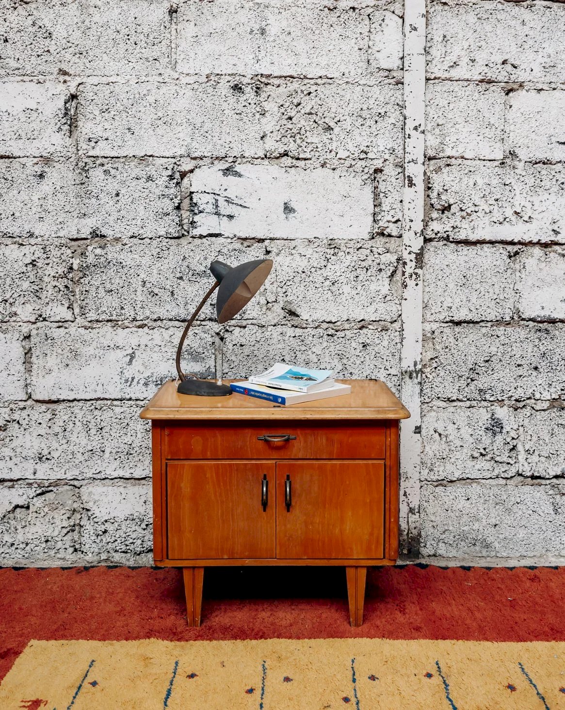 Ajoutez une touche d'élégance à votre intérieur avec cette table de chevet en bois au design raffiné. Équipée d'un tiroir pratique et de deux portes, elle offre un espace de rangement fonctionnel tout en stylisant votre chambre ou votre salon. Les poignées en laiton doré apportent une note chic et sophistiquée, faisant de ce meuble un allié idéal pour une déco contemporaine. Apportez chaleur et convivialité à votre espace avec cette pièce alliant esthétique et praticité. Longueur : 60 cm Largeur : 35 cm Hauteur : 51 cm Petite histoire du chevet Le terme "chevet" désigne depuis le Moyen Âge un petit meuble placé à côté du lit. Initialement conçu comme support pour une lampe ou des objets personnels, le chevet évolue avec le temps pour inclure des tiroirs et des étagères. Essentiel dans la chambre à coucher, il allie aujourd'hui fonctionnalité et design, s’adaptant à tous les styles d'intérieur. État:Occasion: Objet ayant été utilisé. Objet présentant quelques marques d'usure superficielle, ...Occasion: Objet ayant été utilisé. Objet présentant quelques marques d'usure superficielle, entièrement opérationnel et fonctionnant correctement. Il peut s'agir d'un modèle de démonstration ou d'un objet retourné en magasin après une courte période d'utilisation. les éventuelles imperfections. Marque:Debongout Type:Produit chiné Matériau:Bois Style:Contemporain Personnalisé:Chevets