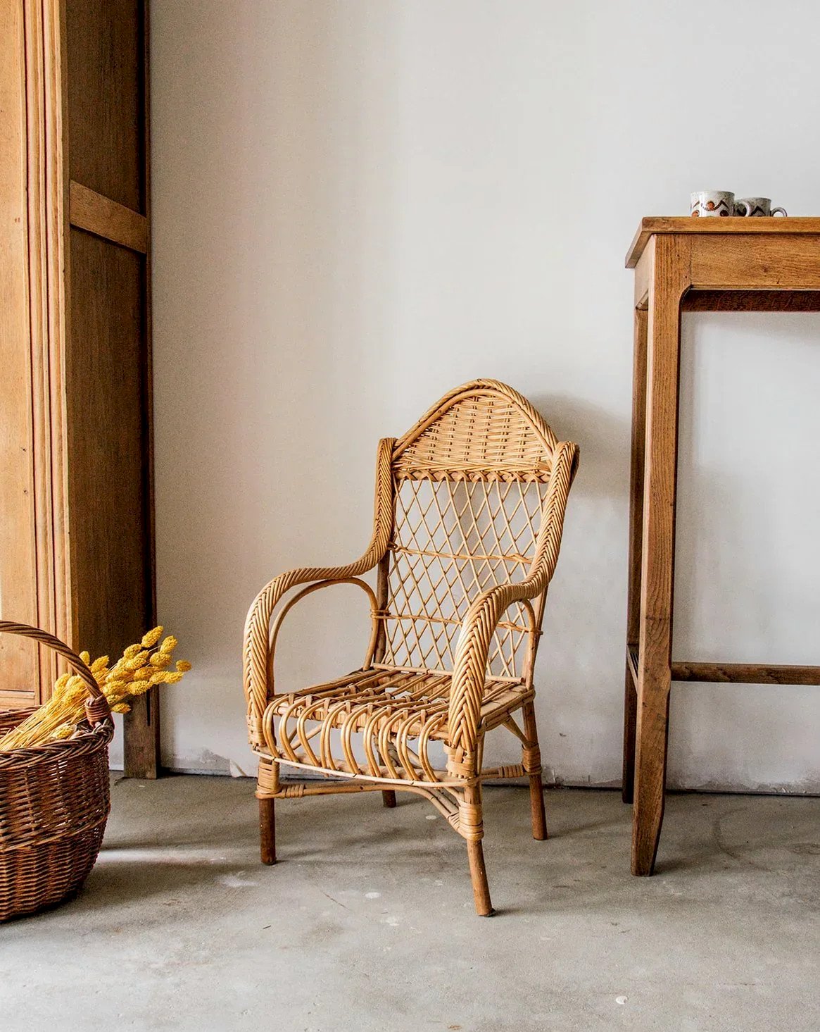 Craquez pour ce fauteuil en rotin pour enfant à la silhouette élégante, sublimé par ses accotoirs courbés et son tressage soigné. Véritable invitation à la détente, il trouvera facilement sa place dans un coin lecture, une chambre ou un salon lumineux. Son allure naturelle et intemporelle en fait une pièce pleine de caractère, parfaite pour insuffler douceur et authenticité à votre intérieur. Longueur : 37 cm Largeur : 35 cm Hauteur : 67 cm Hauteur d'assise : 25 cm État:Occasion: Objet ayant été utilisé. Objet présentant quelques marques d'usure superficielle, ...Occasion: Objet ayant été utilisé. Objet présentant quelques marques d'usure superficielle, entièrement opérationnel et fonctionnant correctement. Il peut s'agir d'un modèle de démonstration ou d'un objet retourné en magasin après une courte période d'utilisation. les éventuelles imperfections. Couleur:Multicouleur Hauteur:Rotin Largeur:Fauteuils et chauffeuses Marque:Debongout Type:Produit chiné Matériau:Rotin Style:Campagne