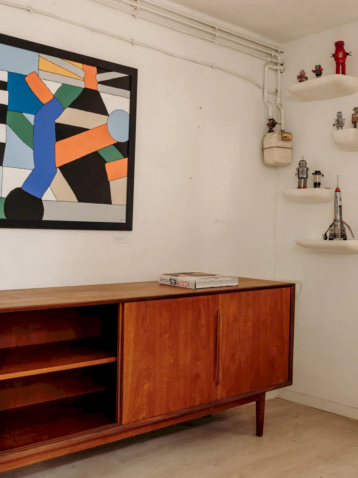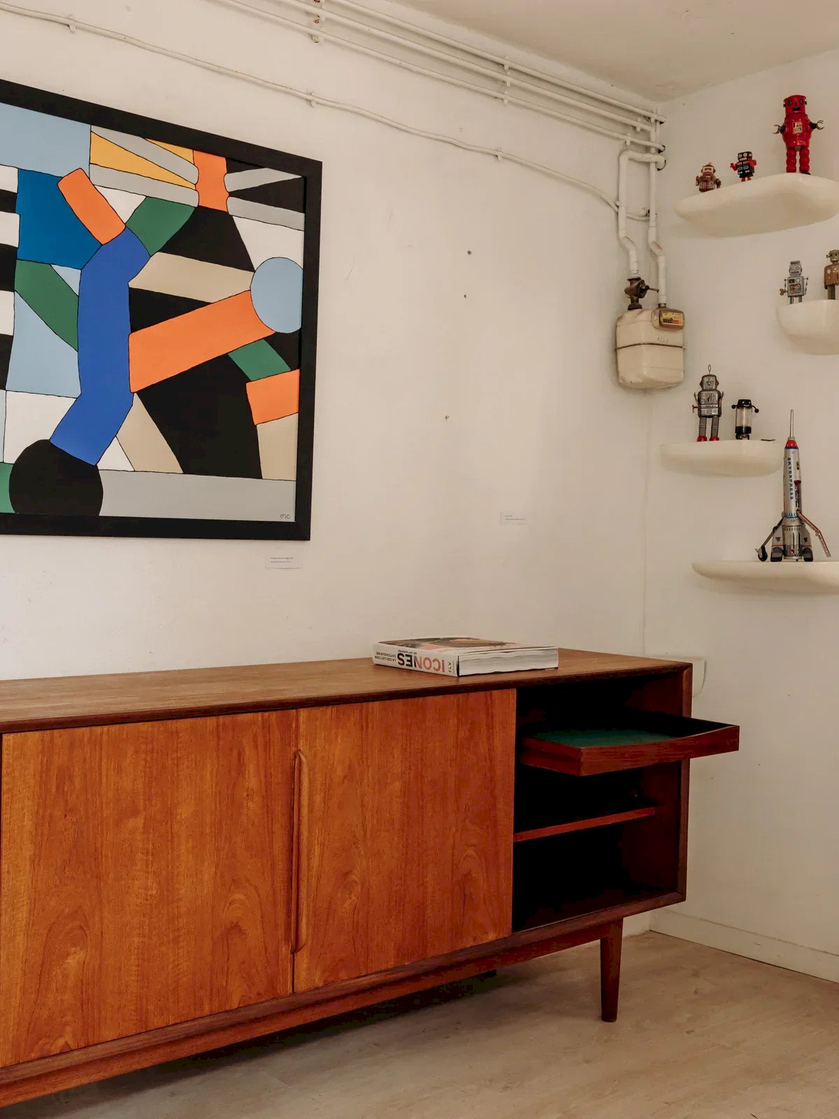Sublimez votre intérieur avec cette enfilade en teck estampillée P.T. Aalborg, conçue au Danemark dans les années 60 et révélant un design nordique aux lignes pures. Sa façade joue la carte du rythme avec quatre tiroirs à gauche — dont un tiroir double dissimulé — et trois portes coulissantes qui découvrent trois compartiments avec étagères, le module de droite étant aménagé en mini-bar. Les poignées sculptées dans la masse soulignent la sobriété et la qualité de fabrication, offrant un meuble long et généreux, parfait pour le salon ou la salle à manger. Entièrement restaurée. Longueur : 240 cm Largeur : 50 cm Hauteur : 83 cm Hauteur tiroir : 11 cm Hauteur des niches : 25 / 27 cm Petite histoire de l’enfilade C’est dans les années 1950 que les premières enfilades scandinaves font leur apparition. L'enfilade de style scandinave fait partie du mobilier innovant d'après-guerre. Ses lignes aériennes et ses volumes rectilignes reprennent le style sobre d'inspiration moderniste, avec toutes les caractéristiques des designers norvégiens, suédois, finlandais… L’enfilade scandinave est réalisée en ébénisterie traditionnelle, généralement en bois de teck. Elle est utilisée comme remplacement du traditionnel buffet de salle à manger et fait maintenant office de console. Pour un salon design et agréable à vivre, l'enfilade est le meuble parfait ! État:Occasion: Objet ayant été utilisé. Objet présentant quelques marques d'usure superficielle, ...Occasion: Objet ayant été utilisé. Objet présentant quelques marques d'usure superficielle, entièrement opérationnel et fonctionnant correctement. Il peut s'agir d'un modèle de démonstration ou d'un objet retourné en magasin après une courte période d'utilisation. les éventuelles imperfections. Marque:Debongout Type:Produit chiné Matériau:Bois, Teck Style:Contemporain Personnalisé:Enfilades