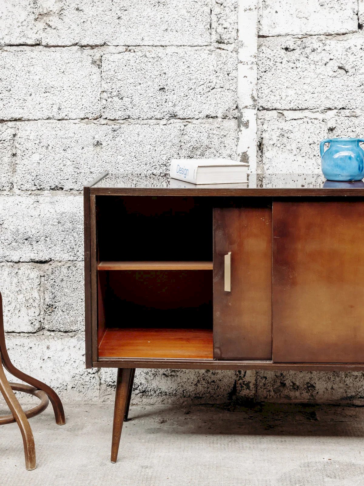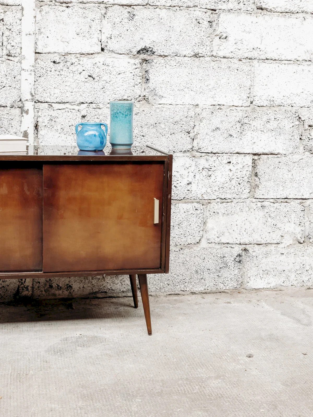 Ce petit meuble en bois vernis avec deux portes coulissantes allie élégance et praticité. Sa finition lisse et brillante met en valeur le grain du bois, tandis que son design compact et fonctionnel permet un rangement astucieux. Parfait pour un salon ou une chambre, il ajoute une touche de sophistication tout en optimisant l'espace avec ses portes coulissantes. Longueur : 95 cm Largeur : 40 cm Hauteur : 73 cm État:Occasion: Objet ayant été utilisé. Objet présentant quelques marques d'usure superficielle, ...Occasion: Objet ayant été utilisé. Objet présentant quelques marques d'usure superficielle, entièrement opérationnel et fonctionnant correctement. Il peut s'agir d'un modèle de démonstration ou d'un objet retourné en magasin après une courte période d'utilisation. les éventuelles imperfections. Marque:Debongout Type:Produit chiné Matériau:Bois Style:Contemporain Personnalisé:Enfilades