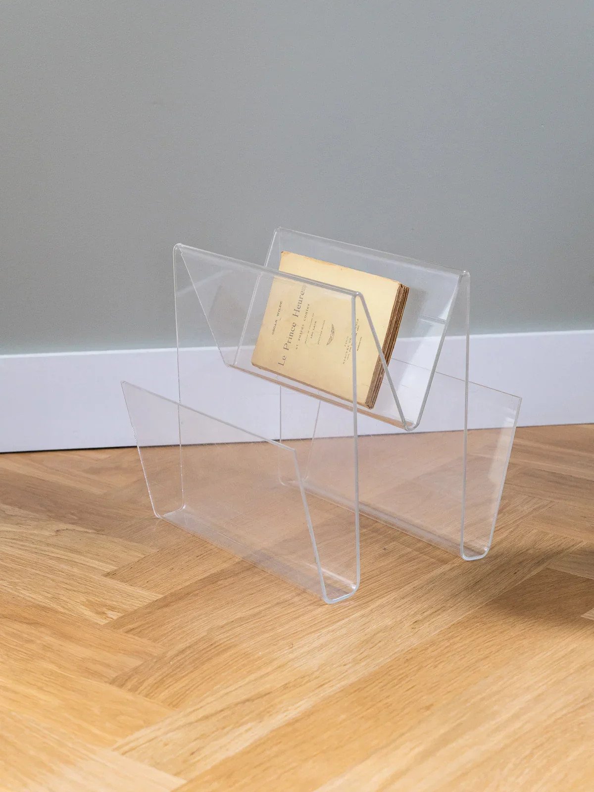 Découvrez le porte-revue en plexiglass à la forme emblématique en M, signé Roche Bobois. Ce modèle vintage allie élégance et fonctionnalité, parfaitement conçu pour sublimer votre intérieur tout en offrant un espace de rangement pratique. Sa transparence et ses lignes épurées lui permettent de s’intégrer harmonieusement dans tous les styles de décoration. Ajoutez une touche de design intemporel à votre salon avec cet accessoire au charme indéniable. Longueur : 30 cm Largeur : 28 cm Hauteur : 30 cm Petite histoire du porte-revues Le terme "porte-revues" apparaît au début du XXe siècle, lorsque journaux et magazines deviennent courants dans les foyers. Ce meuble, souvent en bois ou en métal, est conçu pour organiser et exposer les publications imprimées. D'abord présent dans les salons et salles d'attente, il incarne l'ordre et l'accès à la culture. Aujourd'hui, le porte-revues s'adapte à tous les styles d'intérieur, offrant une touche décorative bien pratique. État:Occasion: Objet ayant été utilisé. Objet présentant quelques marques d'usure superficielle, ...Occasion: Objet ayant été utilisé. Objet présentant quelques marques d'usure superficielle, entièrement opérationnel et fonctionnant correctement. Il peut s'agir d'un modèle de démonstration ou d'un objet retourné en magasin après une courte période d'utilisation. les éventuelles imperfections. Marque:Debongout Type:Produit chiné Matériau:Plexiglass Style:Contemporain