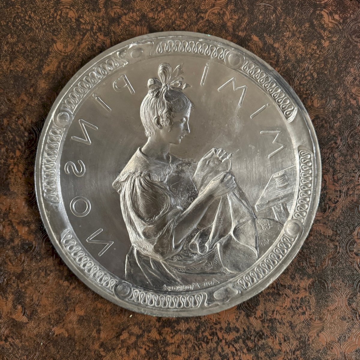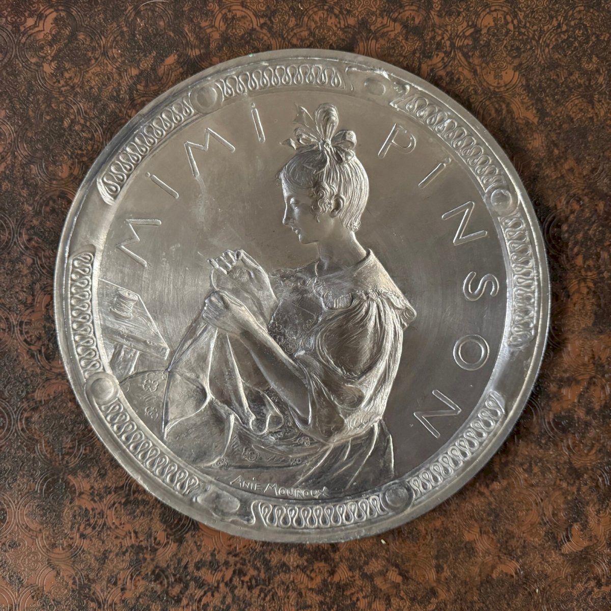 Matrice pour médaille en métal Mimi Pinson par Anie Mouroux XXe M3584