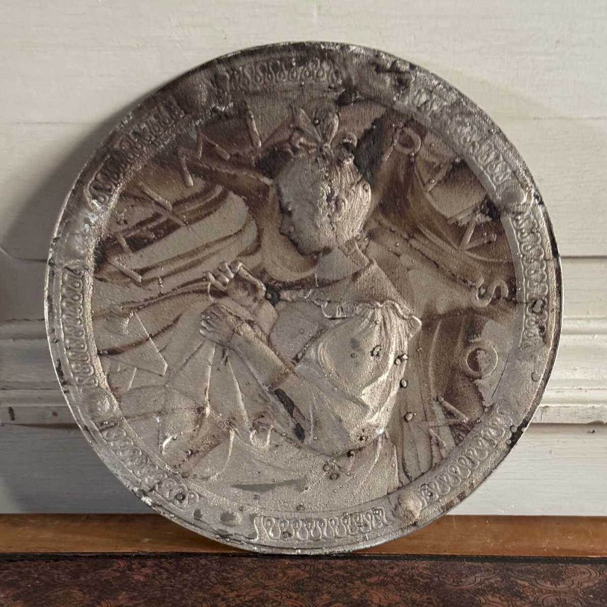 Matrice pour médaille Mimi Pinson par Anie Mouroux XXe M3576 Il s'agit d'une matrice ou moule d'une médaille réalisée par Anie Mouroux représentant "Mimi Pinson". Pour l'état, notons des traces d'usure dues à l'usage. Nos photos vous permettent d'apprécier la qualité de l'objet. Pour l'état, merci de bien détailler les photos. N'hésitez pas à zoomer . Les photos font partie intégrante de la description. Dimensions : Diamètre : 23 cm Épaisseur : 1 cm  Je reste à votre disposition pour toute question. Hauteur:1 cm Longueur:cm Largeur:23 cm