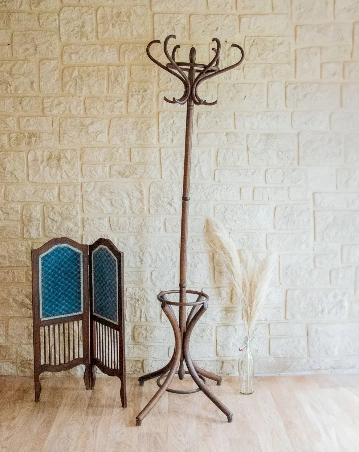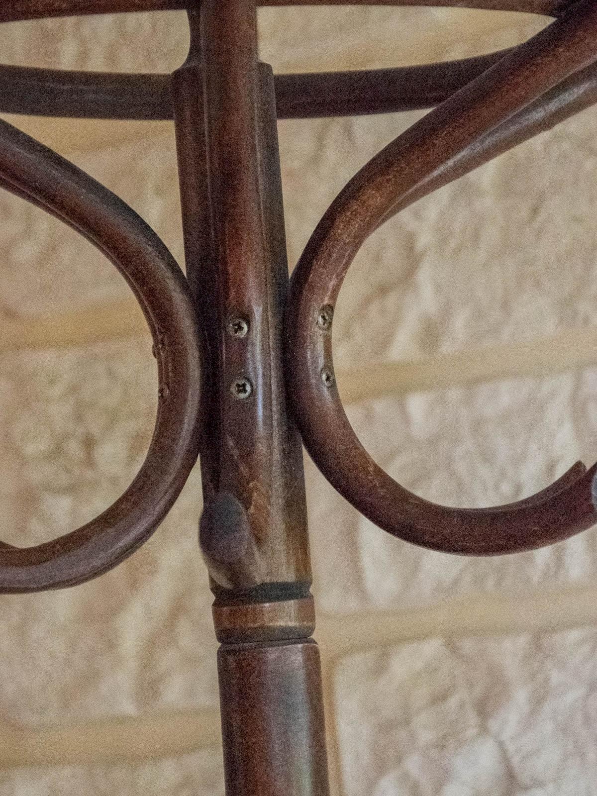Adoptez ce porte-manteaux perroquet au caractère élégant, doté de six têtes larges et six crochets plus petits pour organiser manteaux, chapeaux et accessoires au quotidien. Sa silhouette élancée et son piètement réunissant un porte-parapluies intégré conjuguent praticité et esthétique, offrant une importante capacité sans encombrer l'espace. Idéal pour une entrée chaleureuse ou un couloir soigné, il structure le décor tout en accueillant vos indispensables avec sobriété et charme. Il penche très légèrement sur la droite et porte de légères traces du temps passé. Longueur : 70 cm Largeur : 70 cm Hauteur : 191,5 cm Petite histoire du porte-manteaux Le terme "porte-manteaux" apparaît au XVIIIe siècle, bien que le concept remonte à l'Antiquité. Initialement de simples crochets fixés aux murs, il évolue en un support élégant et fonctionnel, souvent sur pied. D'abord présent dans les halls des maisons bourgeoises, il accueille manteaux et chapeaux, devenant rapidement un élément incontournable de l'aménagement intérieur. Aujourd'hui, le porte-manteaux s'adapte à tous les styles, alliant praticité et esthétique. État:Occasion: Objet ayant été utilisé. Objet présentant quelques marques d'usure superficielle, ...Occasion: Objet ayant été utilisé. Objet présentant quelques marques d'usure superficielle, entièrement opérationnel et fonctionnant correctement. Il peut s'agir d'un modèle de démonstration ou d'un objet retourné en magasin après une courte période d'utilisation. les éventuelles imperfections. Marque:Debongout Type:Produit chiné Matériau:Bois Style:Campagne