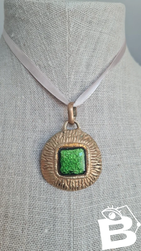 Médaillon du designer français Willy en bronze et émail vert années 50 Doré/Vert Verre/Métal