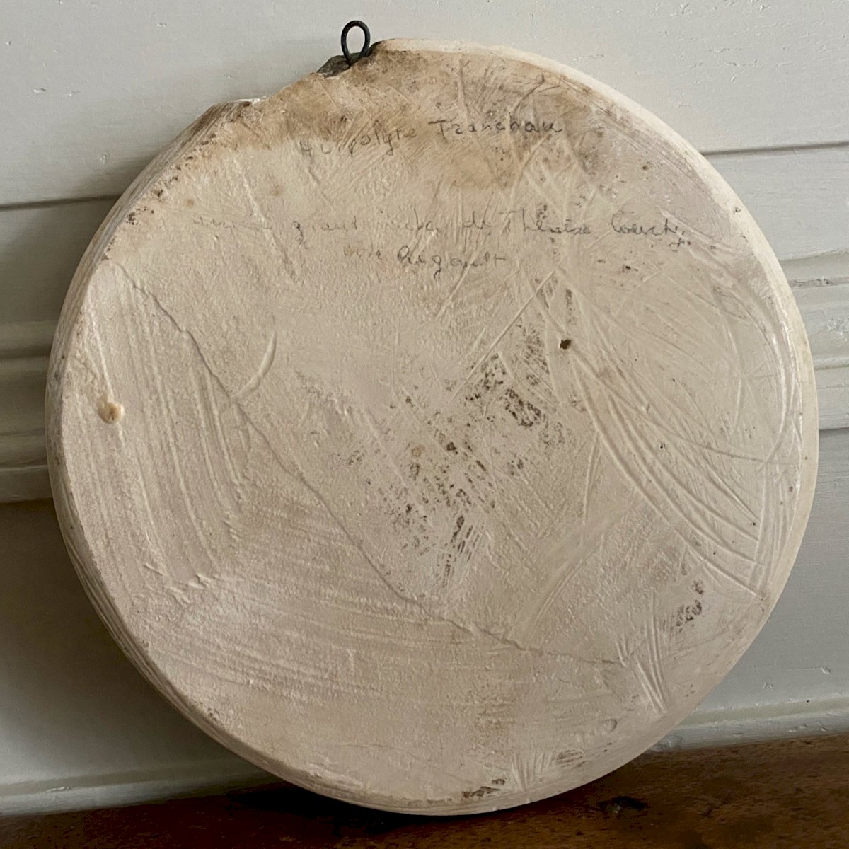 Médaillon en plâtre par A. Bérard bas-relief homme portant des rouflaquettes début XIXe M3743 Ce médaillon en plâtre est en provenance d'un atelier d'artiste, il est signé A. Bérard. On trouve une écriture apocryphe au dos du médaillon. Nous signalons des petits manques, une usure classique de la patine, des manques des plâtre sur la bordure Nos photos vous permettent d'apprécier la qualité de l'objet. Pour l'état, merci de bien détailler les photos. N'hésitez pas à zoomer . Les photos font partie intégrante de la description. Dimensions : Diamètre : 19,3 cm Profondeur : 2,5 cm S :  YE6VC9T7   Je reste à votre disposition pour toute question. Type:Sculpture Hauteur:2,5 cm Matière:Plâtre Longueur:cm Caractéristiques:Bas-relief, Signée Largeur:19,3 cm Thème:Personnage