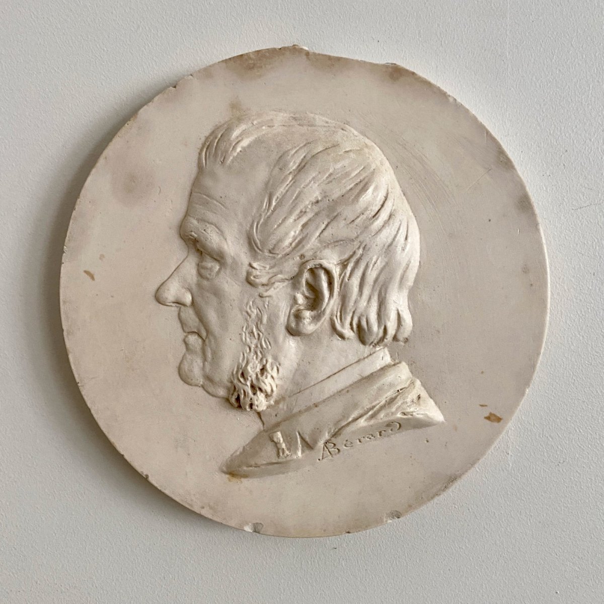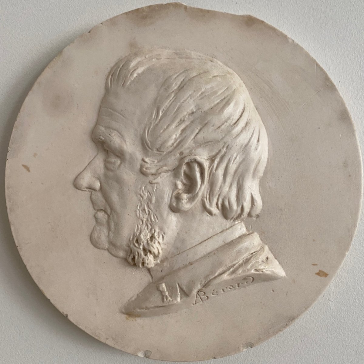 Médaillon en plâtre par A. Bérard bas-relief homme début XIXe M3743