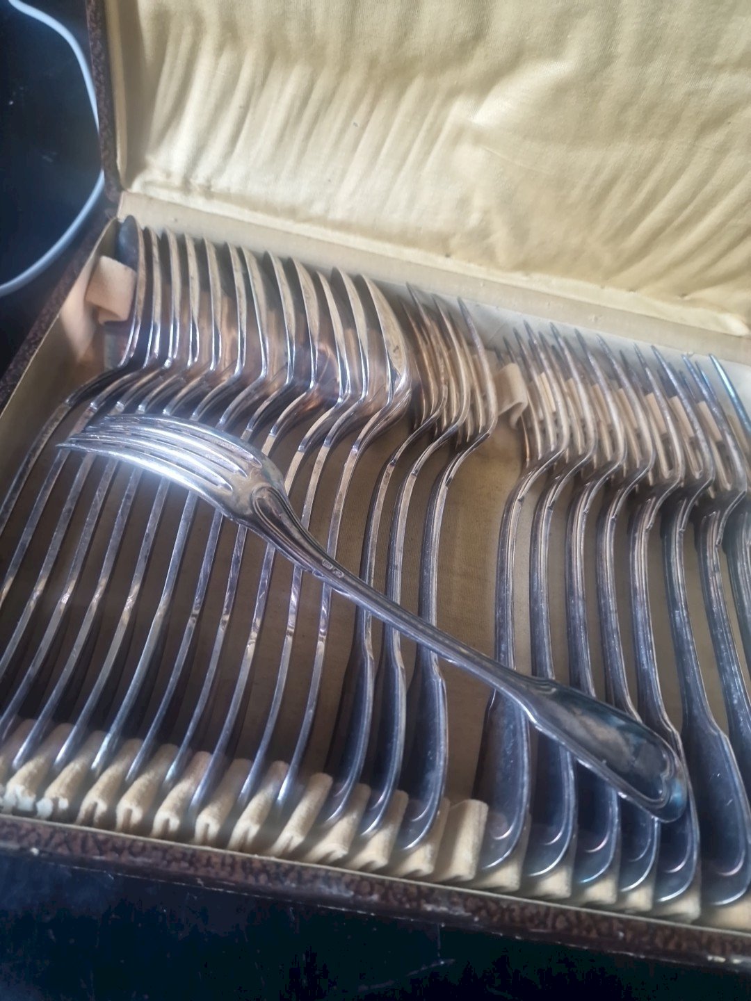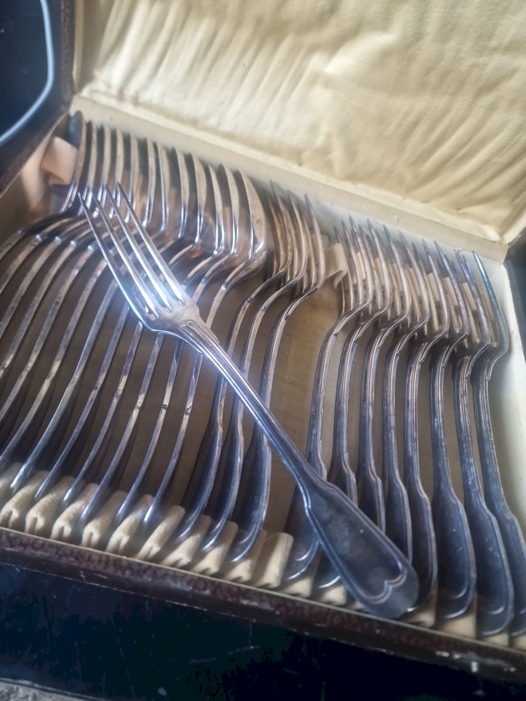 Menagere 12 Cuilleres Et 12 Fourchettes En Alliage Blanc