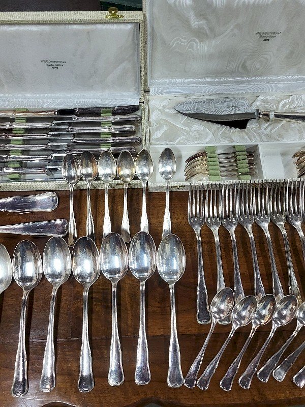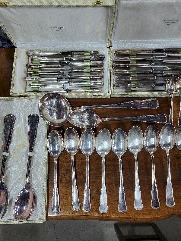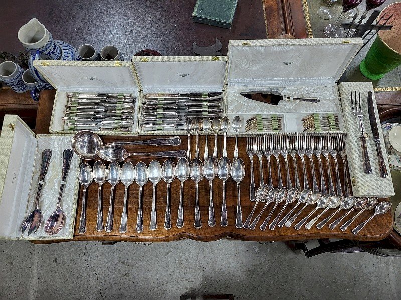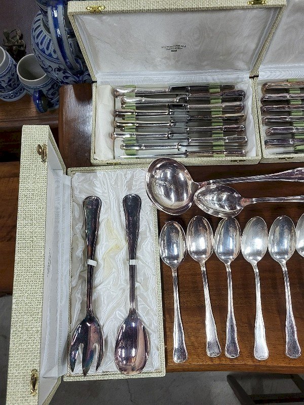 MENAGERE DE TABLE EN METAL ARGENTE 85 PIECES