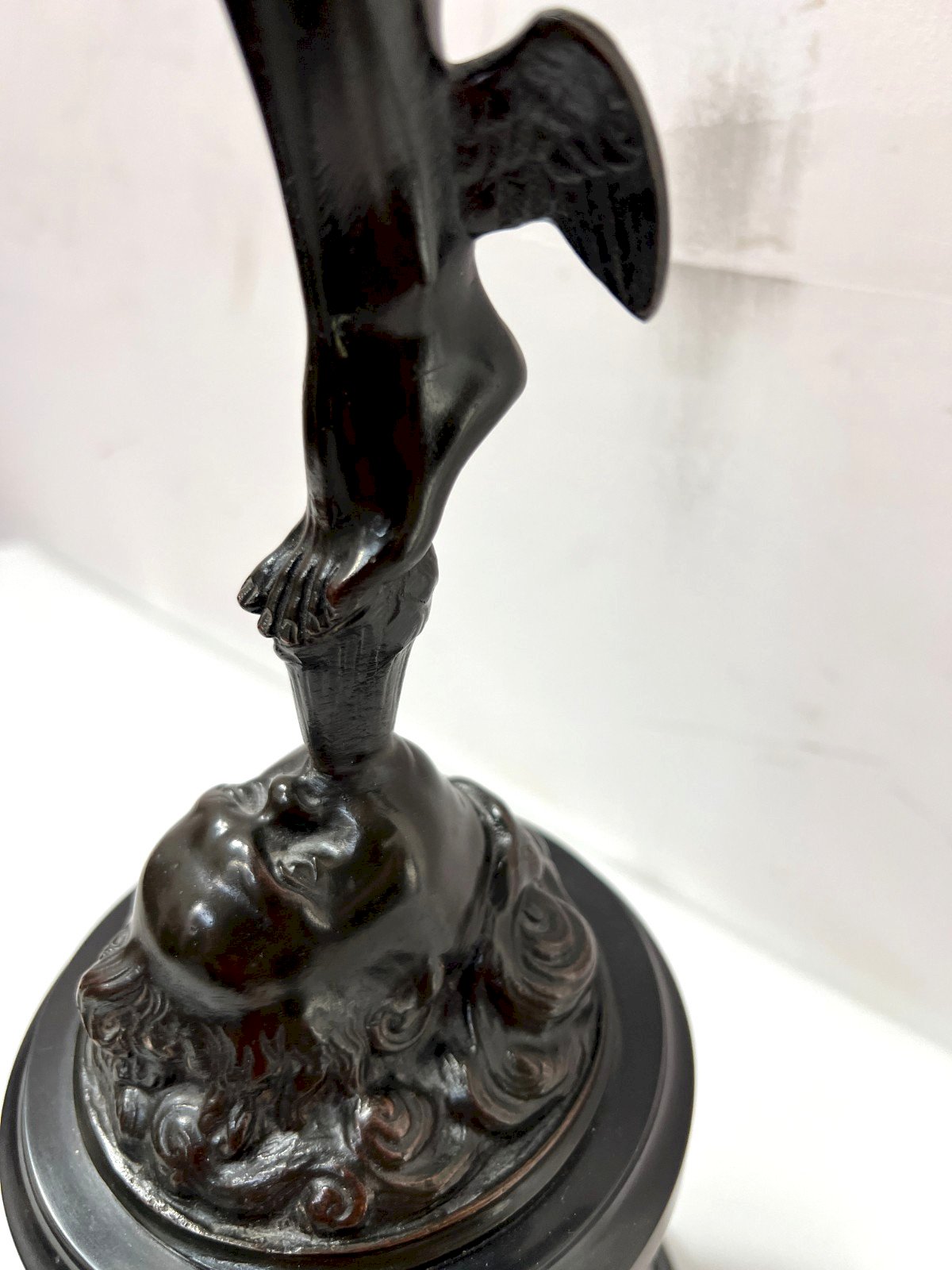 " Mercure porté  sur le souffle d'Eole " Groupe en bronze a patine brune  Base en bronze signé "claudion "a décor de putti  Sur un socle en marbre noir Bon état  Dimension  H 82 x L 26 x 18 cm  Mercure H 66 cm  XIX siècle  Type:Objet de vitrine, Décoratif Pays de fabrication:France Hauteur:82 Matière:Bronze Longueur:26 Largeur:18