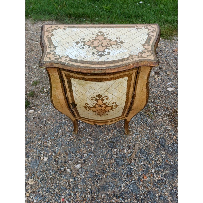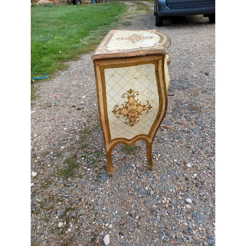 Meuble Chevet Ventru en Bois doré , 1 Porte , Clef et serrure , Haut : 70 cm , long et larg : 55 cm sur 32 cm , poids : 7,8 cm  + Tablette , Haut : 43 cm , Diam : 36 cm , poids : 1,2 Kg , trés bon ètat