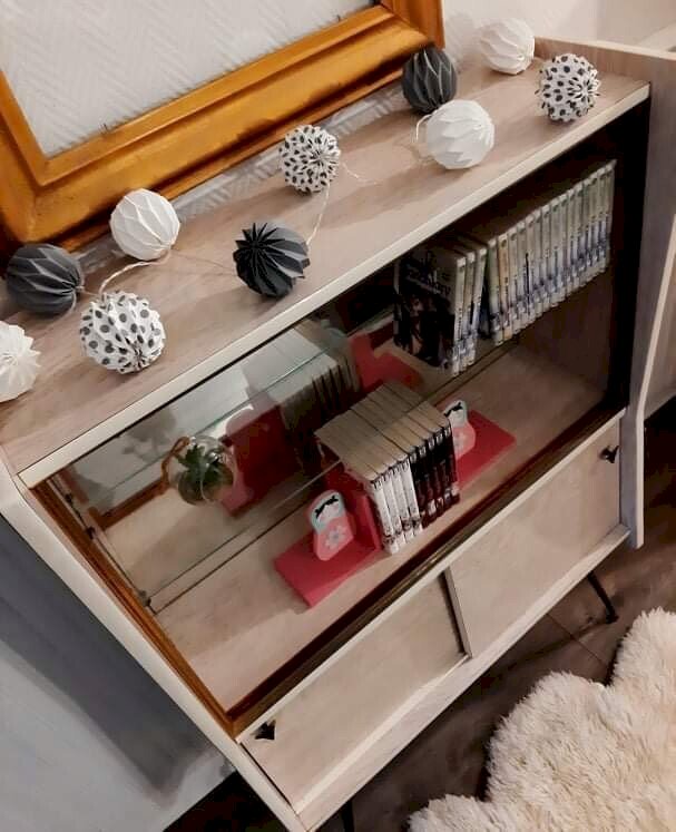 Dimensions 84x30xh125cm. Joli meuble original avec un beau profil. Marques normales d’usage (piquetures sur le miroir du fond, traces d’oxydation sur les pieds et les poignées, légers éclats sur les parties vitrées) mais bon état général. Les vitres ne sont pas présentes sur la photo mais disponibles. Livraison possible via transporteur (ex 60€ vers Paris et la région parisienne). Les délais de livraison de 3 à 5 jours sont imposés par et sont donc donnés à titre purement indicatif. Mc ancien rétro années 1930 folles scandinave design pieds moustache buffet bar entrée couloir cabinet de curiosités chambre enfant bébé Type:Vitrine Matière:Formica