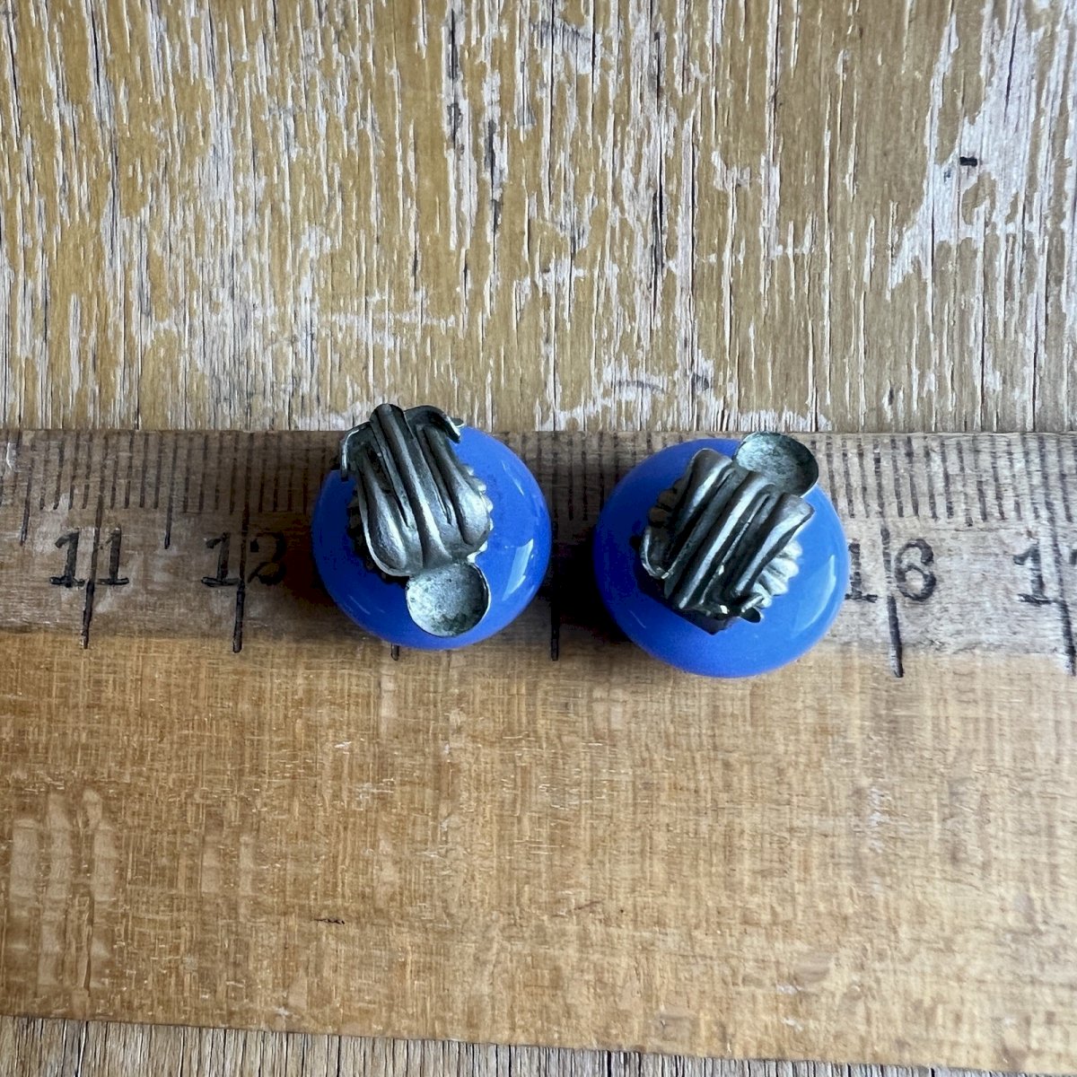 Mini Boucle d’oreille clip pâte de verre lavande vers 1920 Vintage, Ancien