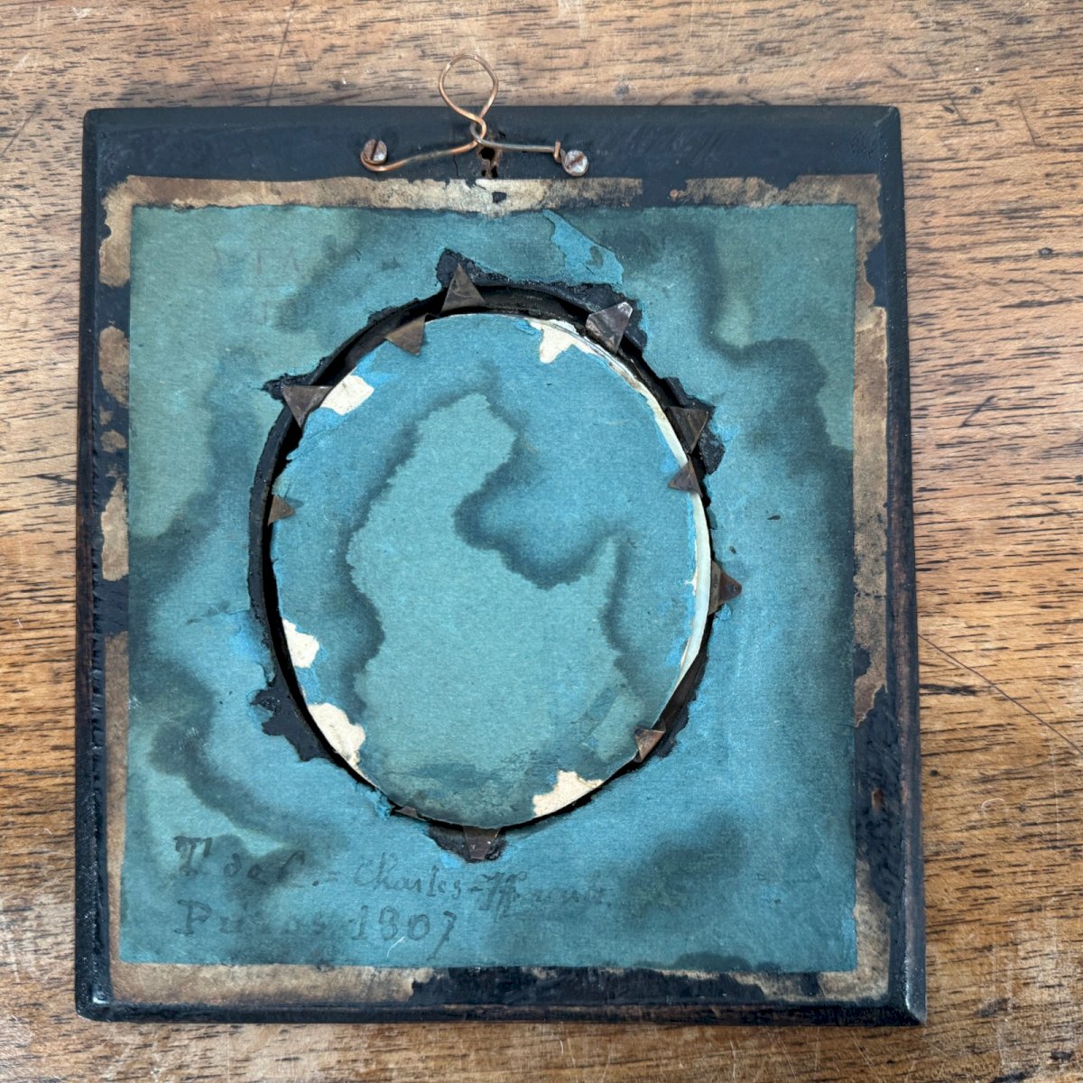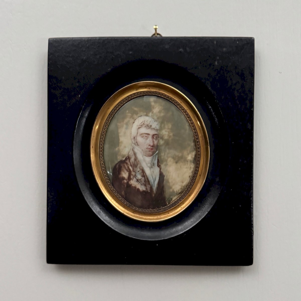 Miniature du XIXe homme en redingote  M5835 Cette miniature datée 1807 sur l'arrière ne porte pas de signature.  Nous signalons que la miniature est abimée et tachée.  Nos photos vous permettent d’apprécier la qualité de l’œuvre. Pour l’état, merci de bien détailler les photos. N’hésitez pas à zoomer. Les photos font partie intégrante de la description. Dimensions  : - Cadre Hauteur : 14,6 cm Largeur : 13,3 cm Épaisseur : 0,8 cm - Œuvre Hauteur : 7,5 cm Largeur : 6,1 cm A :  ZSF1YPNGQU P :  1668835   Je reste à votre disposition pour toute question. Authenticité:Inconnu Poids:Inconnue Type:Miniature Pays d'origine:France Hauteur:14,6 cm Longueur:cm Caractéristiques:Encadré Largeur:13,3 cm Thème:Portrait, Autoportrait