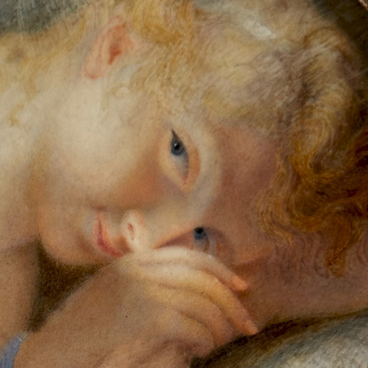 Miniature XIXe jeune fille la tête reposant sur un coussin A5627