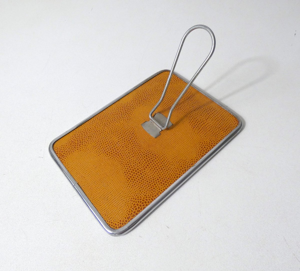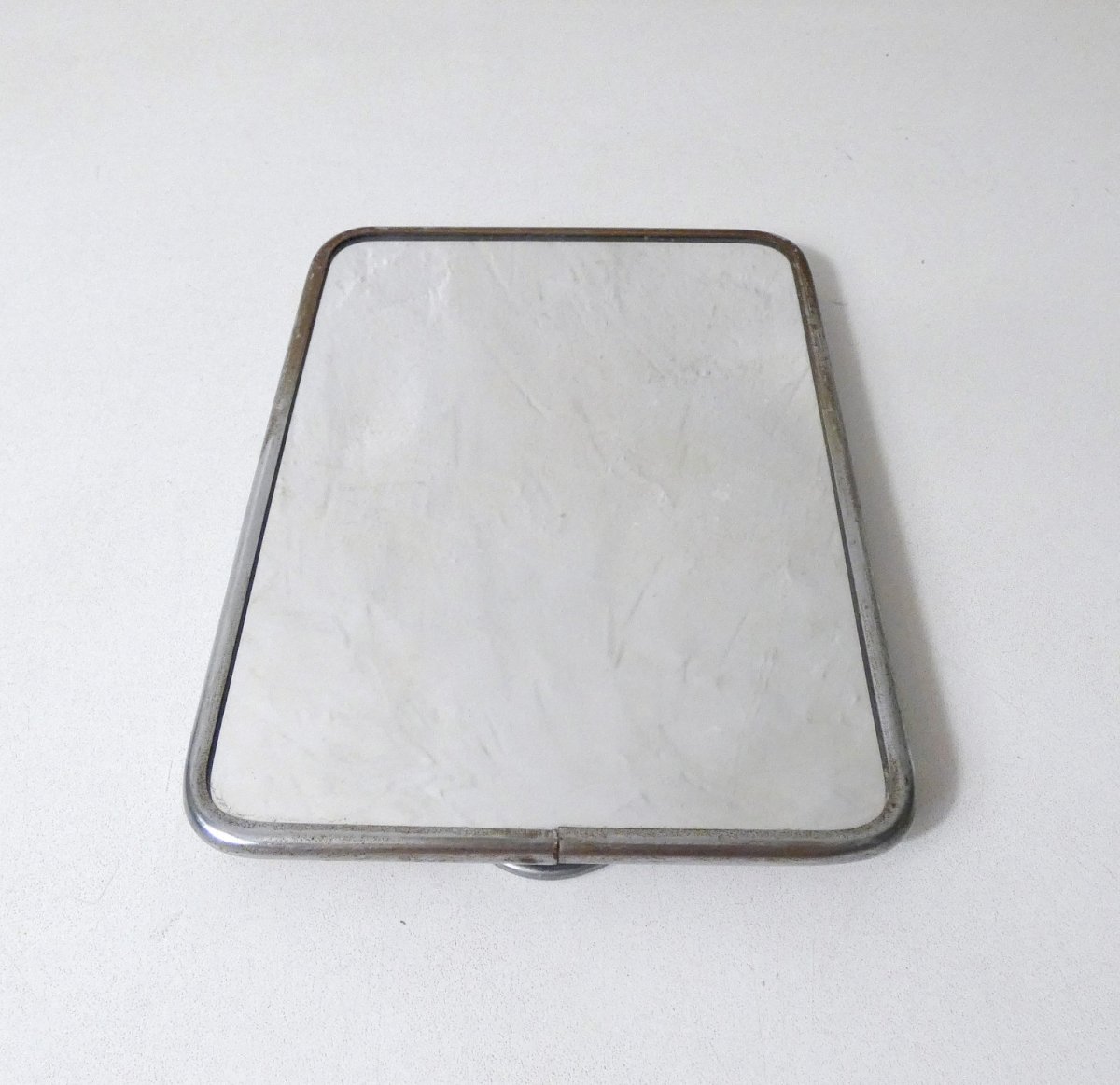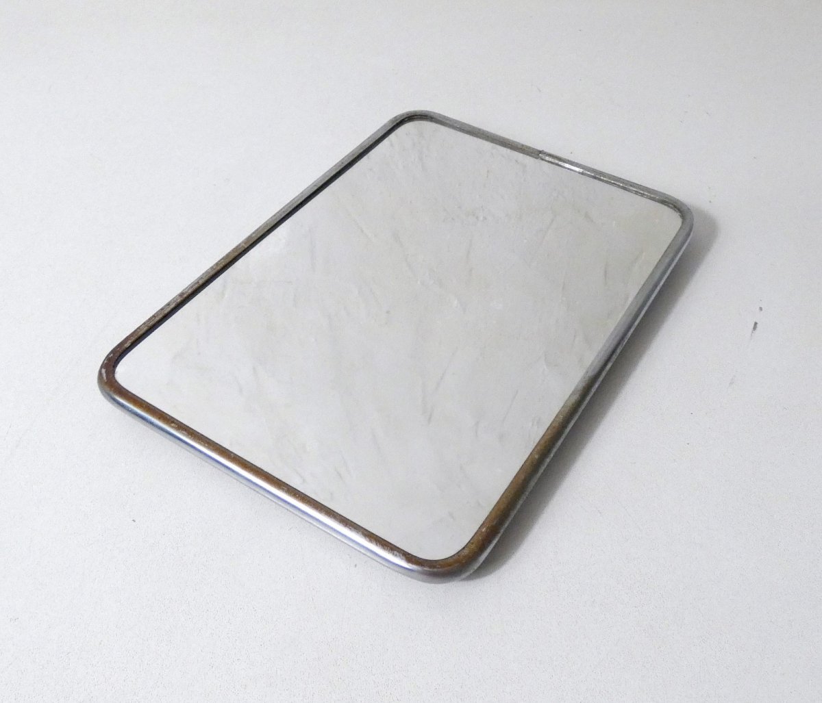 miroir de barbier, années 70. Tour en métal argenté. Dimensions: 14,5 x 20 cm. En bon état, des traces d'oxydation.