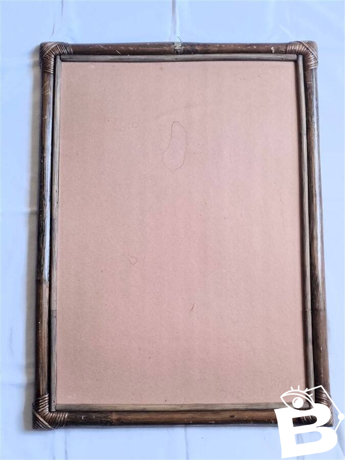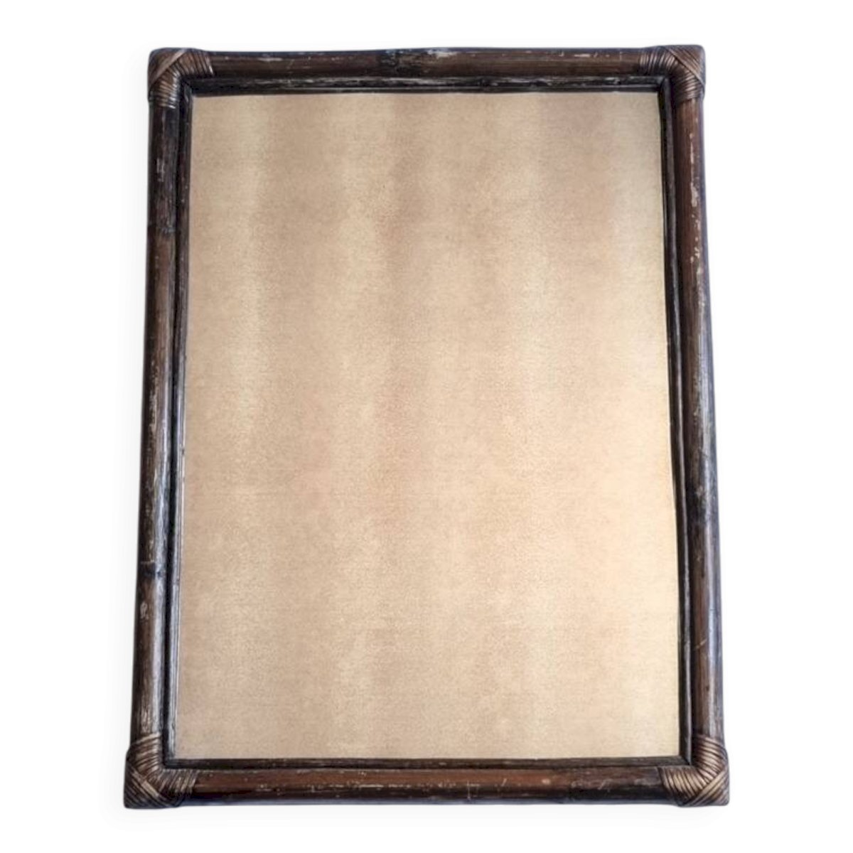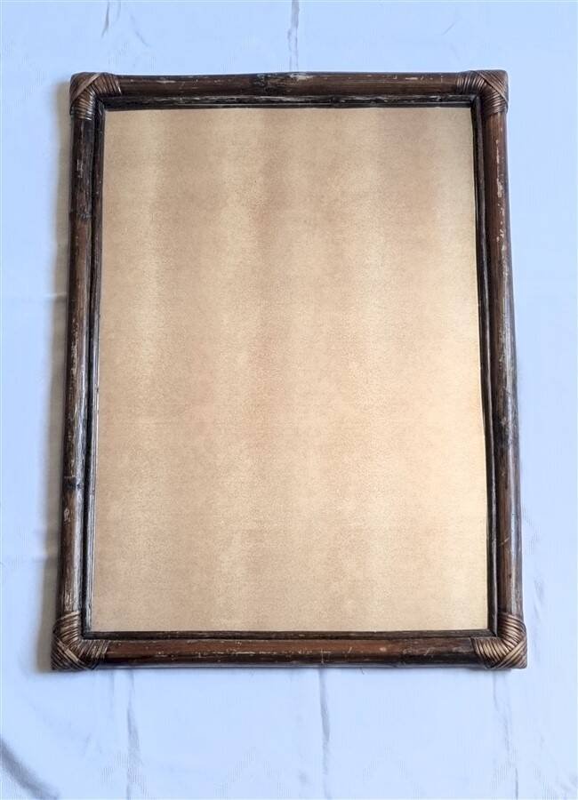 Ancien miroir avec un cadre en bambou, le cadre présente des traces d'usage et la glace a pris une teinte rosée, brune, que l'on voit bien sur les photo.Dimensions: environ 52 X 70 cm.Poids: 3.350 kg.