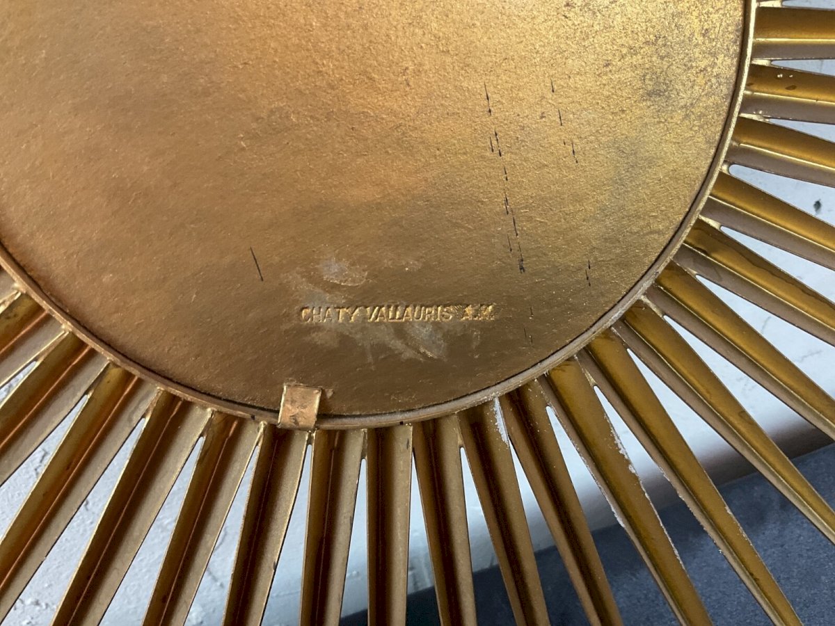 Miroir dit Œil De Sorcière CHATY VALLAURIS Diamètre : 51 cm Miroir plat non bombé Authenticité:Original Type:Objet de vitrine, Décoratif Marque:CHATY VALLAURIS Origine:France Période:Design du XXème Sous-type:miroir Matière:acier Style:1970