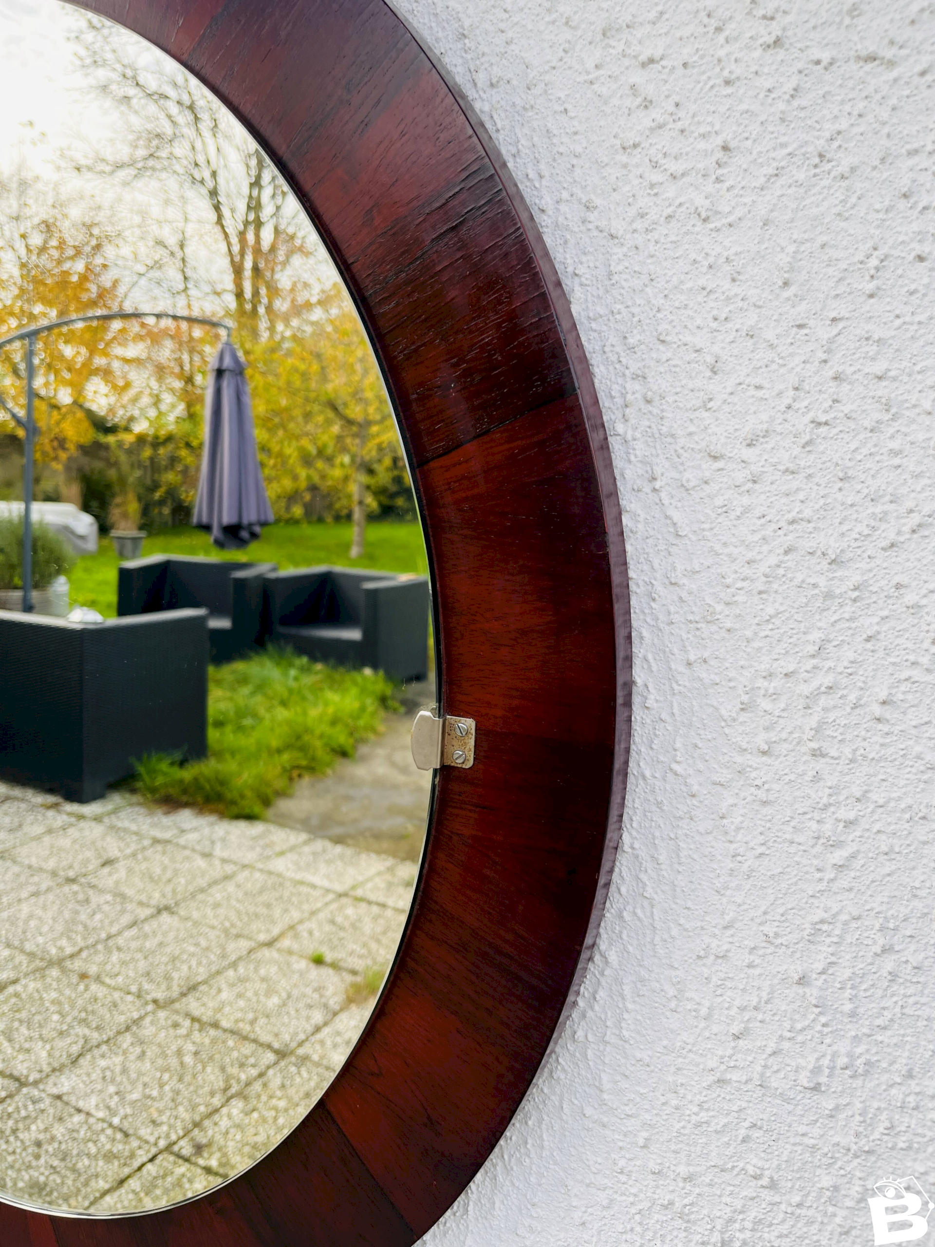 Ses tons riches et chaleureux et sa finition lisse sont caractéristiques du style Mid-Century Modern, ce qui en fait un élément intemporel pour votre décoration.Le cadre du miroir est fabriqué en bois de rose de haute qualité, reconnu pour sa durabilité et ses magnifiques veinures.Sa forme ronde et son design minimaliste lui permettent de s'intégrer harmonieusement à différents styles de décoration, du contemporain au classique.Idéal pour agrandir l'espace et apporter de la luminosité à n'importe quelle pièce, ce miroir est à la fois fonctionnel et décoratif.Sublimez votre intérieur avec cette pièce exceptionnelle et laissez-la refléter votre goût impeccable.