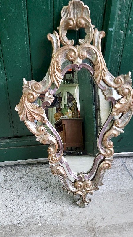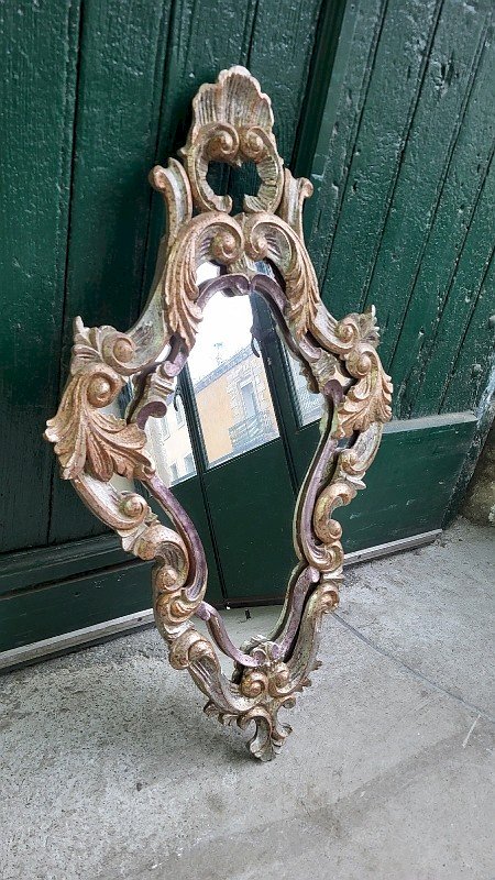 joli miroir style Louis XV dorure et argenture le cadre est en bois sculpté il y a 3 couleurs - 1 doré vieilli - 1 argent vieilli - 1 cuivre mauve c'est un très beau modèle il est en bon état le teint est en très bon état il y a de petits manques sur le côté gauche le reste est en très bon état il mesure 83 cm de haut sur 50 cm de large et 4 cm d'épaisseur Je reste à votre disposition pour toutes vos questions ou par email ou par téléphone : . pour d'autres photos plus grandes envoyez moi votre email. pour une livraison entre le sud et paris demandez le prix a JM TRANSPORTS au 06.12.25.48.48. pour une autre destination contactez moi. Type:Mural Style:LOUIS XV