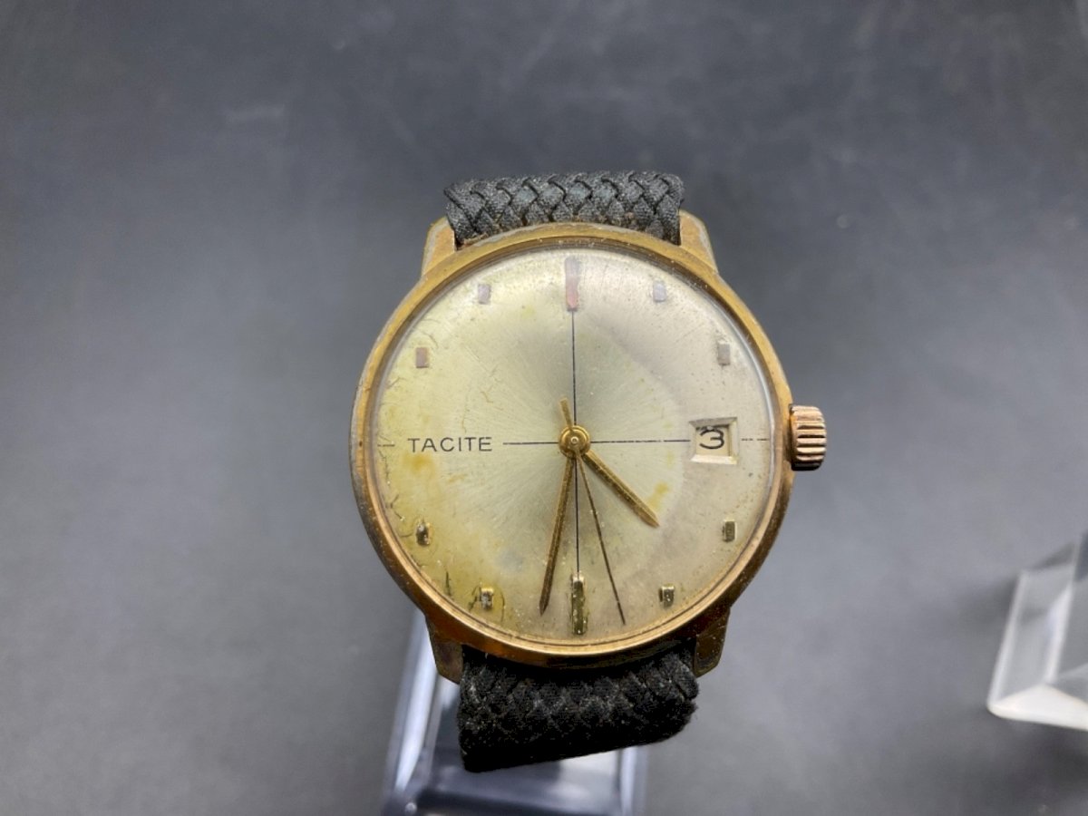 montre homme TACITE BESANÇON Pl or  Fonctionne très bien Je ne suis pas arrivé à l’ouvrir  Diamètre : 33,1mm État:Occasion - Très bon état: Cet objet a été légèrement utilisé, mais son état est correct. Il peut ...Occasion - Très bon état: Cet objet a été légèrement utilisé, mais son état est correct. Il peut présenter quelques signes d'usure, comme de légères rayures ou des ternissures. Toutes les imperfections doivent être montrées et décrites dans l'annonce du vendeur. Type:Montre bracelet Marque:tacite Matériau du boîtier:Plaqué or Matériau du bracelet:Or plaqué Pour:Homme Mouvement:Mouvement mécanique (remontage automatique) Département:Homme