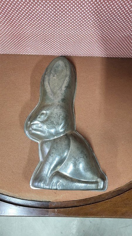 joli et ancien moule à gâteau en tôle Lapin il est en très bon état il mesure 18 cm de large sur 33 cm de haut et 6 cm d'épaisseur Type:MOULE