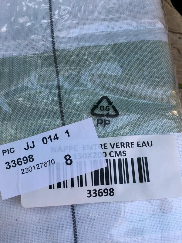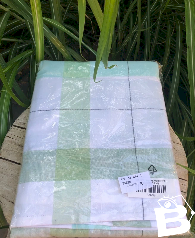Nappe rectangulaire 150*200 blanche et verte à carreaux , neuve , encore dans son emballage
