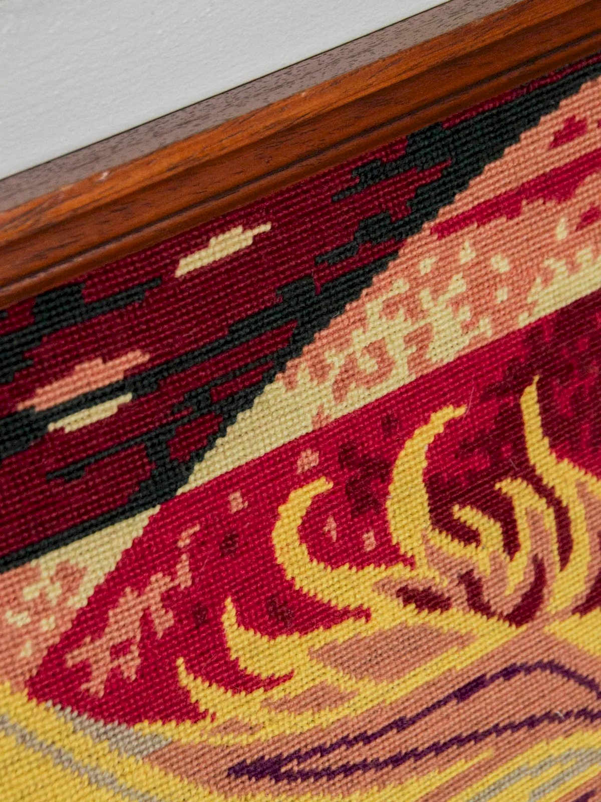Ajoutez une touche d'élégance et de couleur à votre intérieur avec cette magnifique tapisserie encadrée multicolore. Dotée d'un cadre en bois foncé, cette œuvre d'art représente des chevaux dessinés avec finesse, apportant une atmosphère dynamique et chaleureuse à n'importe quelle pièce. Parfaite pour les amateurs d'équitation ou ceux en quête d'un décor original, elle saura captiver tous les regards. Transformez votre mur en un véritable Chef-d'œuvre ! Dimensions en position horizontale : Longueur : 118 cm Largeur : 2 cm Hauteur : 54 cm État:Occasion: Objet ayant été utilisé. Objet présentant quelques marques d'usure superficielle, ...Occasion: Objet ayant été utilisé. Objet présentant quelques marques d'usure superficielle, entièrement opérationnel et fonctionnant correctement. Il peut s'agir d'un modèle de démonstration ou d'un objet retourné en magasin après une courte période d'utilisation. les éventuelles imperfections. Marque:Debongout Type:Produit chiné Matériau:Tissu, Bois Style:Contemporain