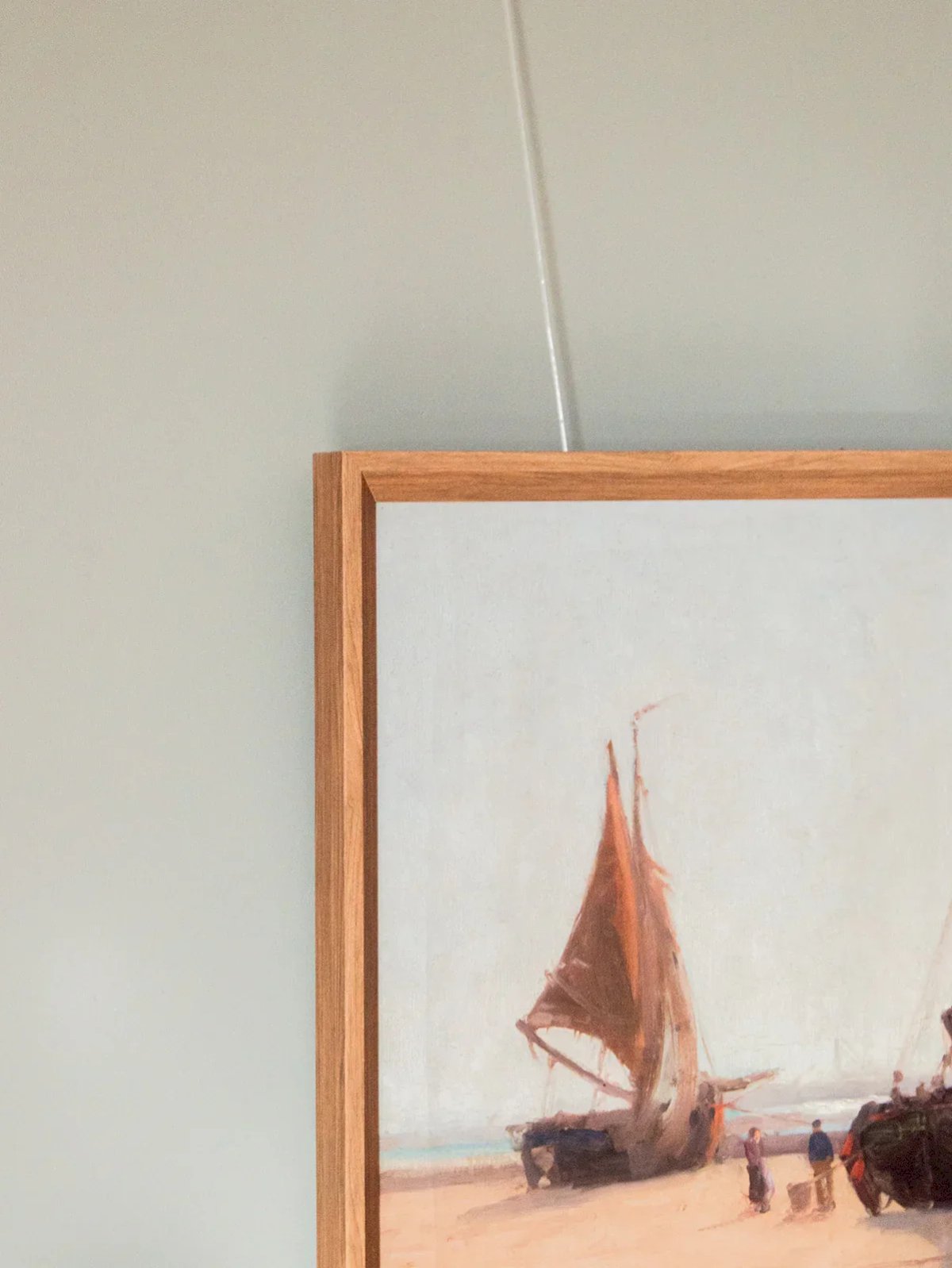 Découvrez cette magnifique huile sur toile signée Einar From, représentant deux voiliers échouées sur le rivage. Cet artiste norvégien, formé à l'école de l'artisanat et de l'industrie de l'art, a su capturer la lumière et la couleur du sable tirant sur le rose, évoquant ainsi l'ambiance des peintres de l'école de Skagen. Réalisée au cours de ses voyages à travers l'Europe et les États-Unis, cette œuvre témoigne du talent et de l'originalité de From. Un véritable tableau qui apportera une touche d'élégance et de sérénité à votre intérieur. Exclusivité web, la rencontre se fera chez vous ! Avec cadre : Longueur : 71 cm Largeur : 56 cm Sans cadre : Longueur : 60 cm Largeur : 45 cm État:Occasion: Objet ayant été utilisé. Objet présentant quelques marques d'usure superficielle, ...Occasion: Objet ayant été utilisé. Objet présentant quelques marques d'usure superficielle, entièrement opérationnel et fonctionnant correctement. Il peut s'agir d'un modèle de démonstration ou d'un objet retourné en magasin après une courte période d'utilisation. les éventuelles imperfections. Marque:Debongout Type:Produit chiné Matériau:Toile Style:Contemporain